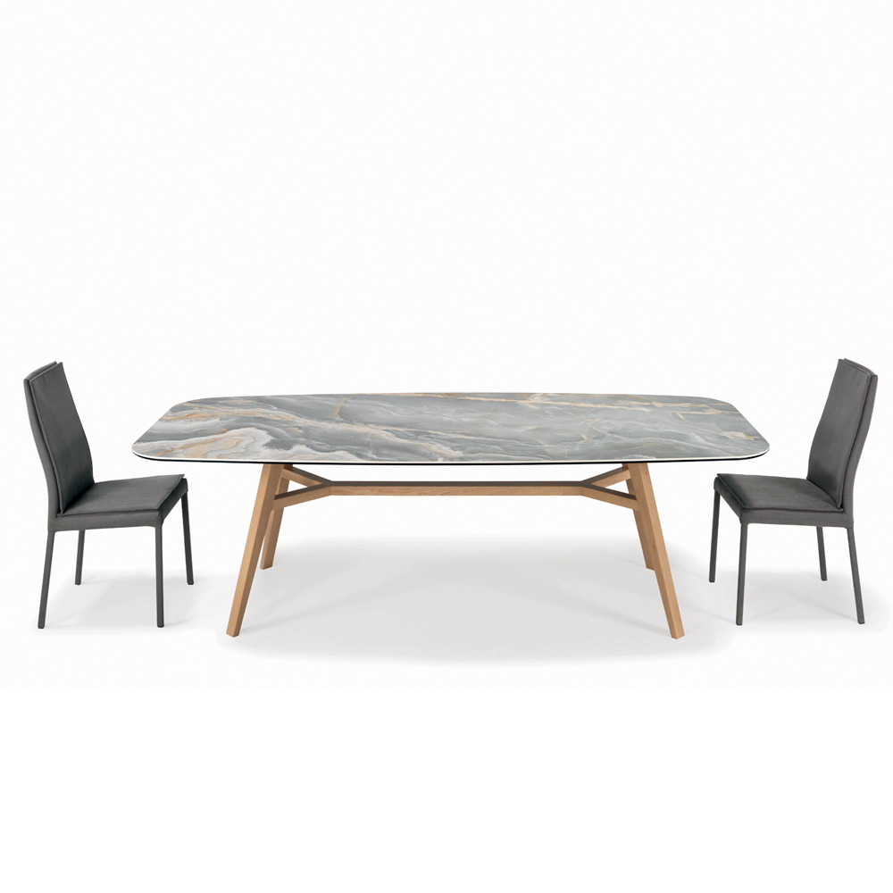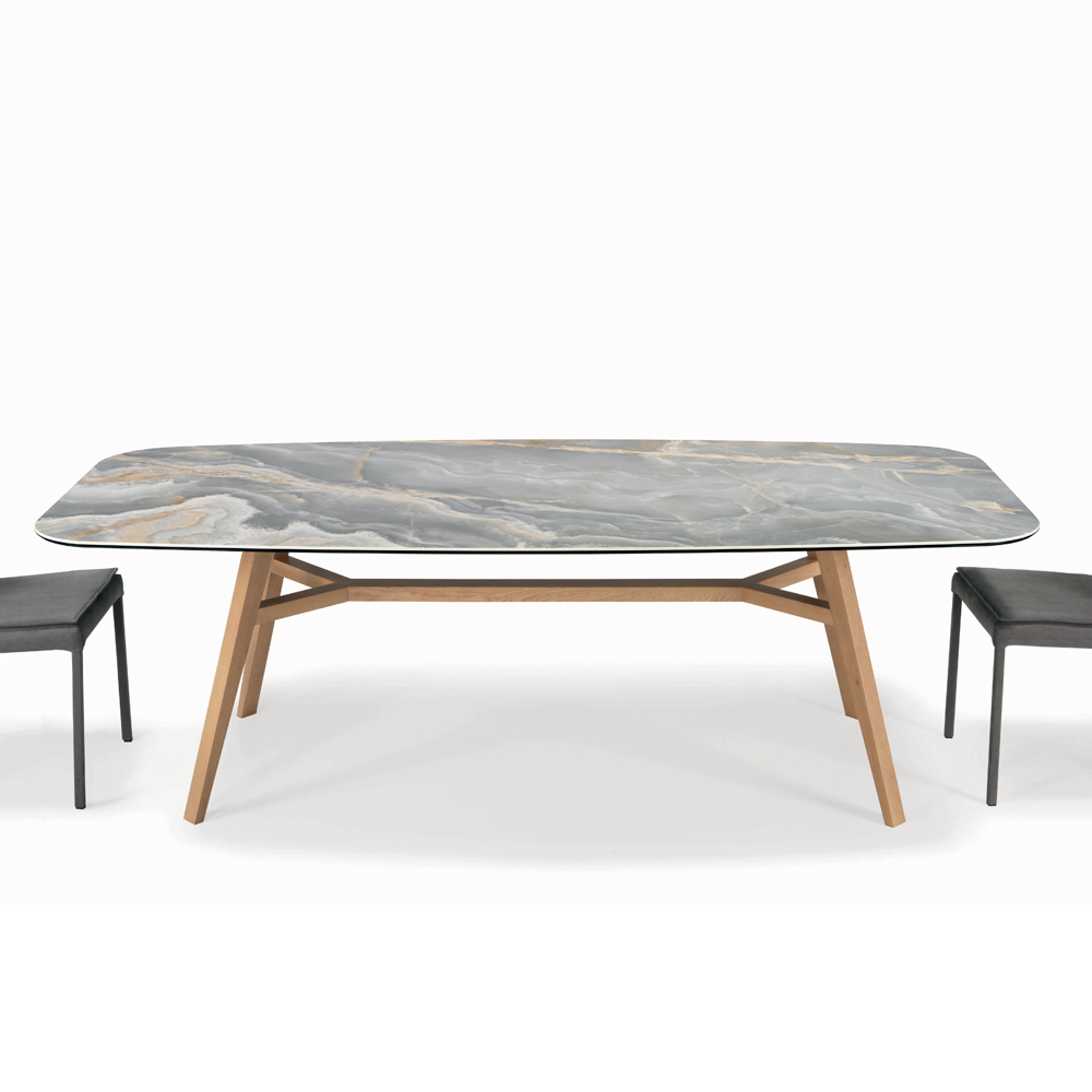 طاولة معيشة ثابتة على شكل برميل مع سطح من السيراميك وحافة مشطوفة بزاوية 45 درجةوقاعدة من خشب الدردار مع لمسة نهائية من خشب البلوط الطبيعي . يتميز هذا المنتج بتصميمه العصري ، ويهدف أساسًا إلى استخدامه يوميًا دون المساس بتصميمه. تُنفَّذ سلسلة الإنتاج، من التصميم إلى الإنتاج، وحتى مراقبة الجودة، بالكامل في إيطاليا ، لضمان الحفاظ على الطابع المميز للخبرة الإيطالية وأهمية علامة "صنع في إيطاليا".
