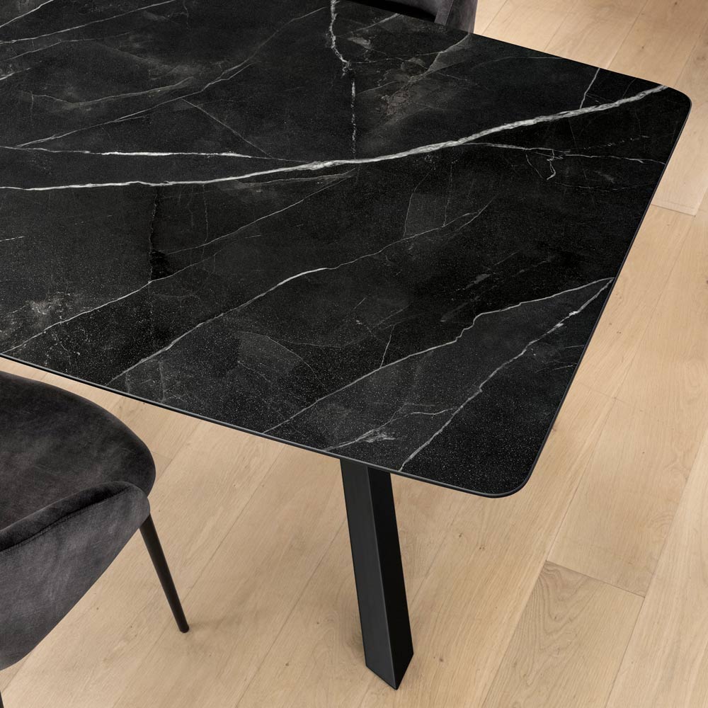 السطح مصنوع من لامينام ، وهو سطح سيراميكي من أحدث جيل يجمع بين الأناقة والأداء التقني . يتميز بمقاومته العالية ، مما يجعله مثاليًا للاستخدام اليومي في المطبخ، أو غرفة الطعام، أو في البيئات المهنية.