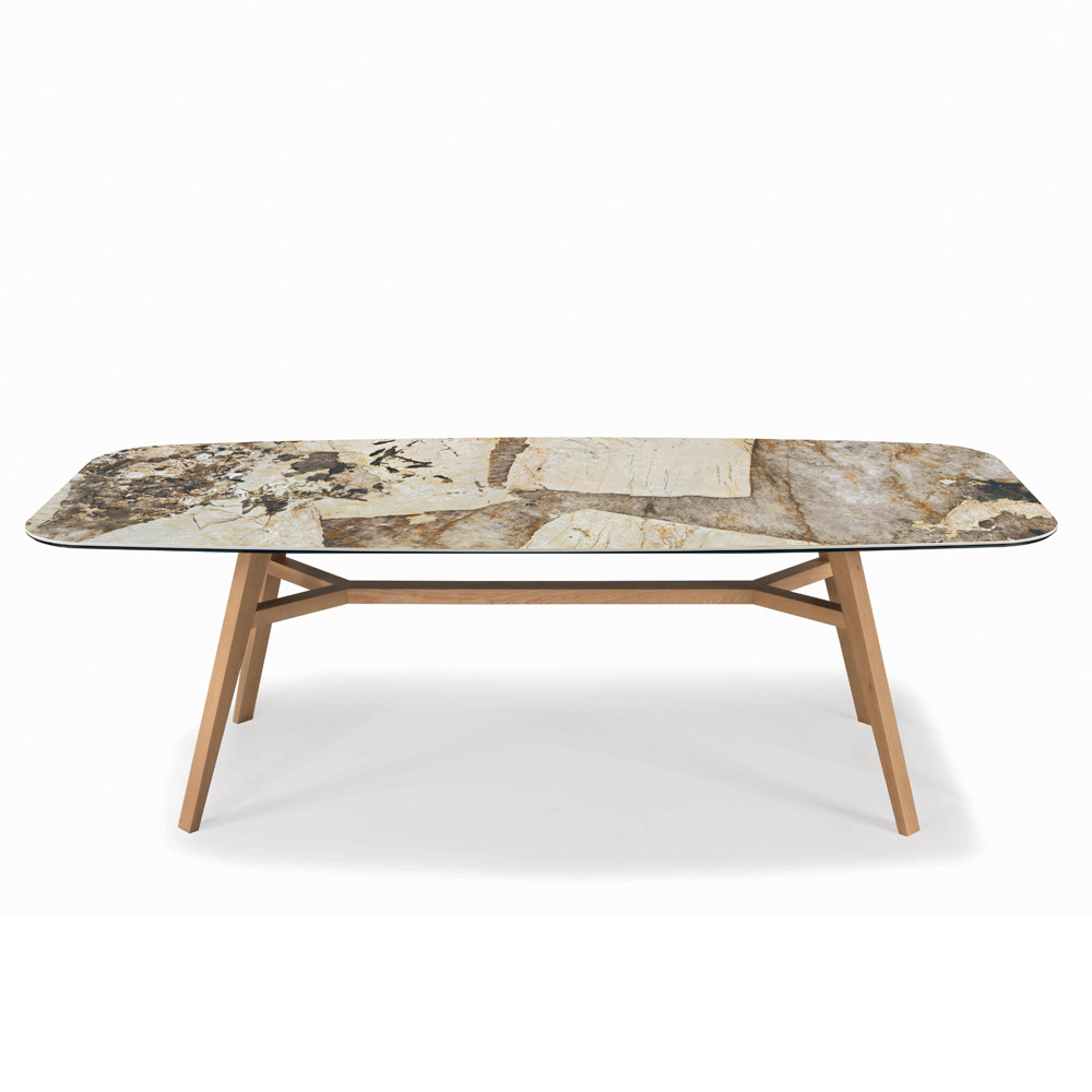 طاولة معيشة ثابتة على شكل برميل مع سطح من السيراميك وحافة مشطوفة بزاوية 45 درجةوقاعدة من خشب الدردار مع لمسة نهائية من خشب الجوز كاناليتو . يتميز هذا المنتج بتصميمه العصري ، ويهدف أساسًا إلى استخدامه يوميًا دون المساس بتصميمه. تُنفَّذ سلسلة الإنتاج، من التصميم إلى الإنتاج، وحتى مراقبة الجودة، بالكامل في إيطاليا ، لضمان الحفاظ على الطابع المميز للخبرة الإيطالية وأهمية علامة "صنع في إيطاليا".