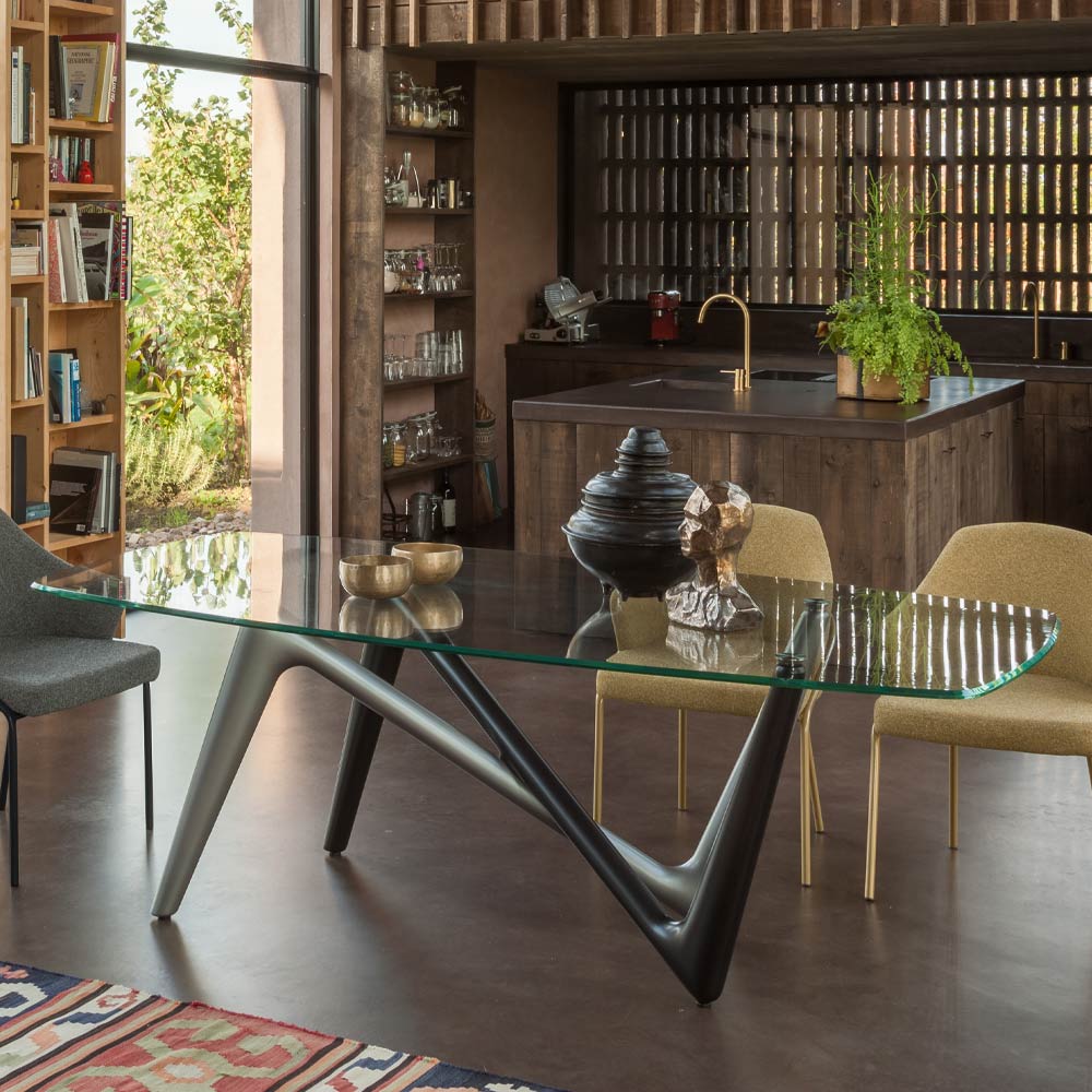 طاولة طعام مصنوعة من مادة البولي يوريثين والزجاج، صنع في إيطاليا