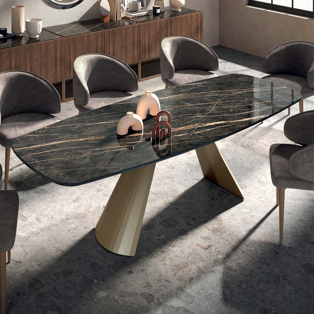 طاولة معيشة ثابتة على شكل برميل، مع سطح من السيراميك ، وحافة مشطوفة بزاوية 45 درجة ، وقاعدة من الفولاذ المطلي باللون الشمبانيا وأقدام قابلة للتعديل. اختيار أجود الخاماتوالعناية بأدق التفاصيل يُنتج منتجًا إيطاليًا عالي الجودة . بفضل شكل قاعدته وتشطيباته المُتاحة، تُصبح هذه الطاولة الخيار الأمثل لأي غرفة معيشة يومية ، وهي الخيار الأمثل لمن يرغب بإضفاء لمسة أنيقة وفاخرة وفريدة على غرفته.
