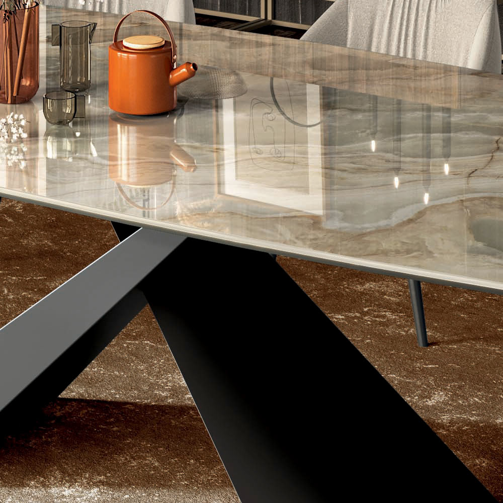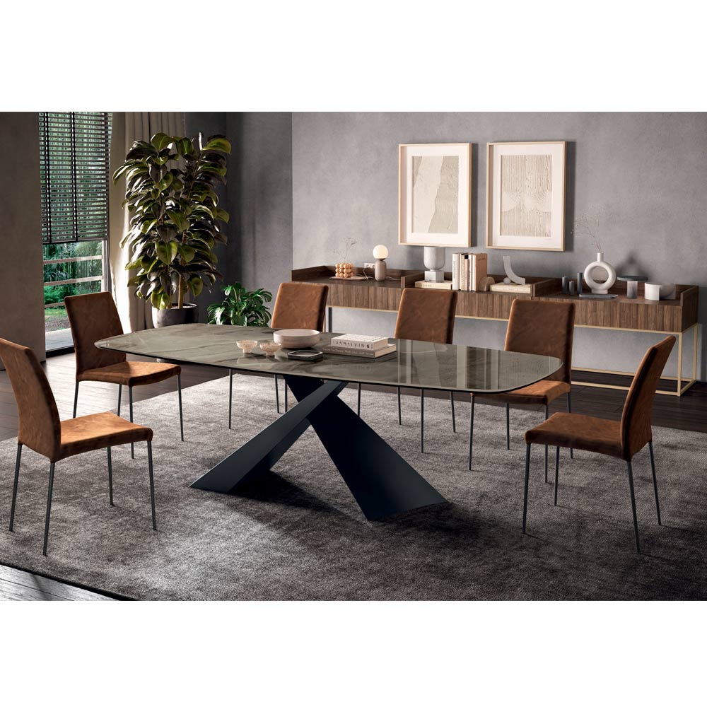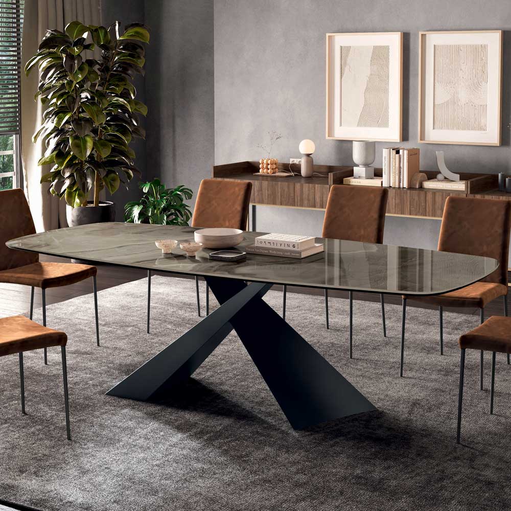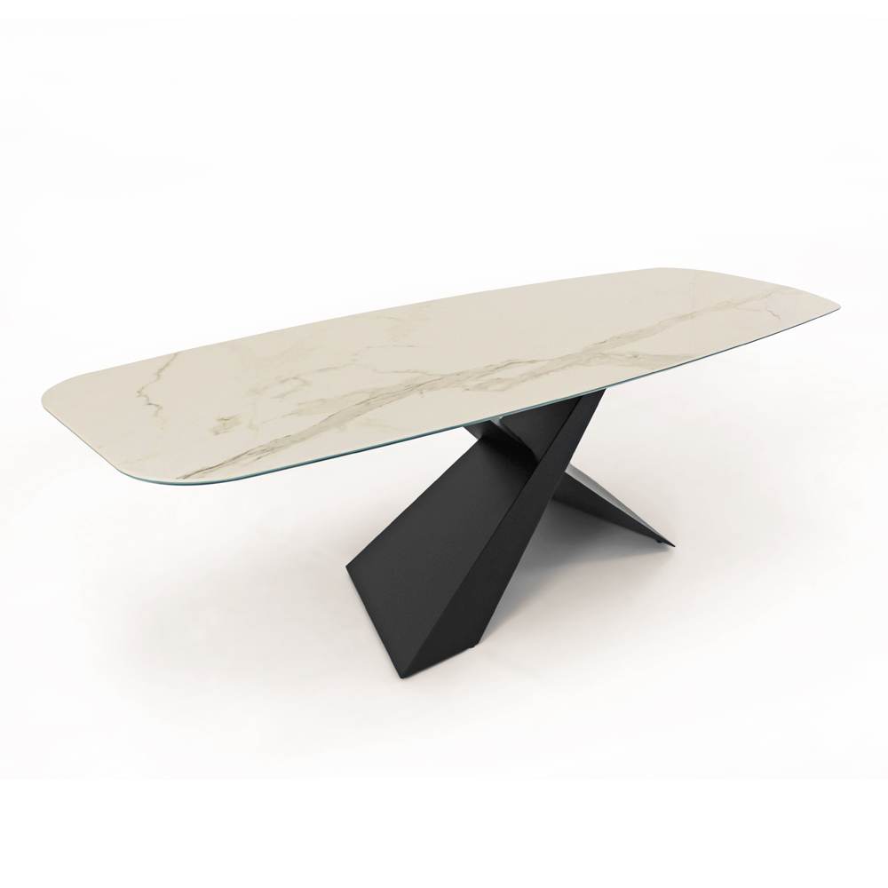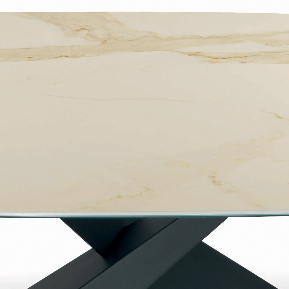 طاولة معيشة ثابتة على شكل برميل مع سطح من السيراميك وحافة مشطوفة بزاوية 45 درجة وقاعدة من الفولاذ المطلي باللون الأسود وأقدام قابلة للتعديل. شكل القاعدة المميز على شكل حرف X يضفي على الطاولة لمسةً فريدةً وراقيةً ، تُناسب تخصيصها وتكاملها مع أثاث أي بيئة يومية أو تعاقدية. تتميز هذه الطاولة بجودة موادها الممتازةودقة تصنيعها ، مما يضمن جميع وظائفها التي تُعرف بصنعها في إيطاليا.