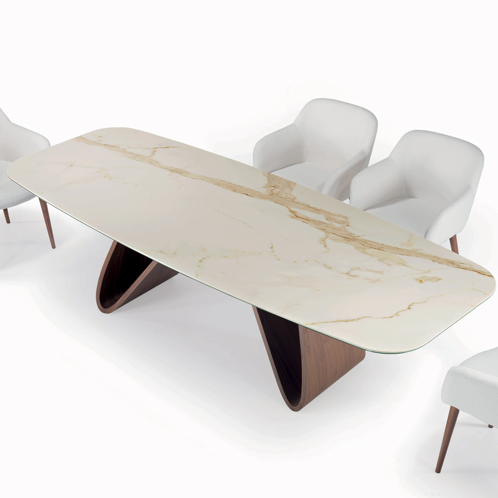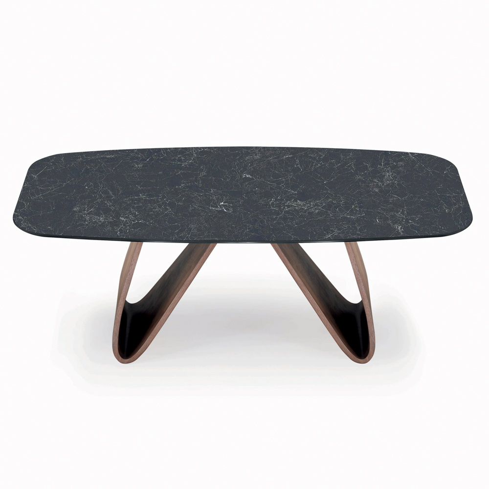 طاولة معيشة ثابتة على شكل برميل مع سطح من السيراميك وحافة مشطوفة بزاوية 45 درجة وقاعدة من خشب الجوز كاناليتو وأقدام قابلة للتعديل. بفضل شكل القاعدة والتشطيبات العلوية المتوفرة، تُضفي الطاولة لمسةً من الحركة والأناقة على أي بيئة يومية أو عملية. تضمن المواد المستخدمة الأداء العملي والجمال البصري، ما يجعلها منتجًا عمليًا وجميلًا في جميع المناسبات.
