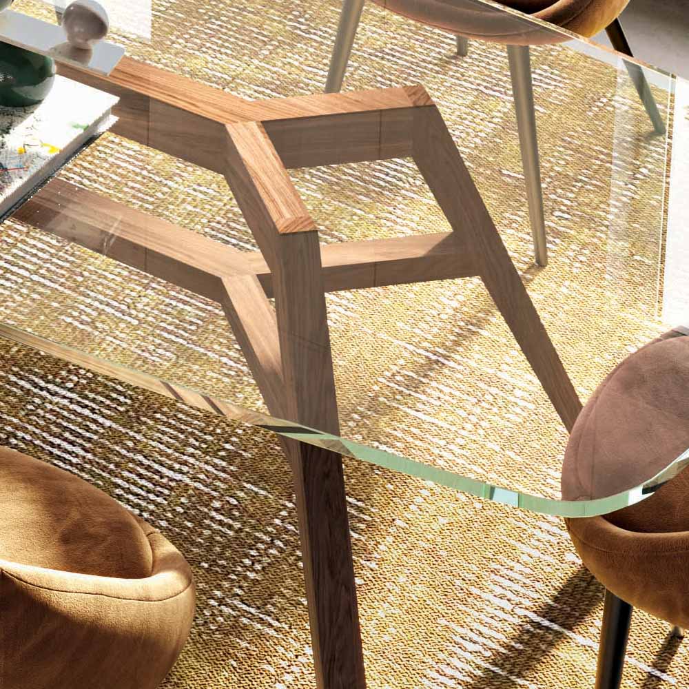 طاولة معيشة ثابتة على شكل برميل مع سطح زجاجي وحافة مشطوفة بزاوية 30 درجةوقاعدة من خشب الدردار مع لمسة نهائية من خشب الجوز كاناليتو . يتميز هذا المنتج بتصميمه العصري ، ويهدف أساسًا إلى استخدامه يوميًا دون المساس بتصميمه. تُنفَّذ سلسلة الإنتاج، من التصميم إلى الإنتاج، وحتى مراقبة الجودة، بالكامل في إيطاليا ، لضمان الحفاظ على الطابع المميز للخبرة الإيطالية وأهمية علامة "صنع في إيطاليا".