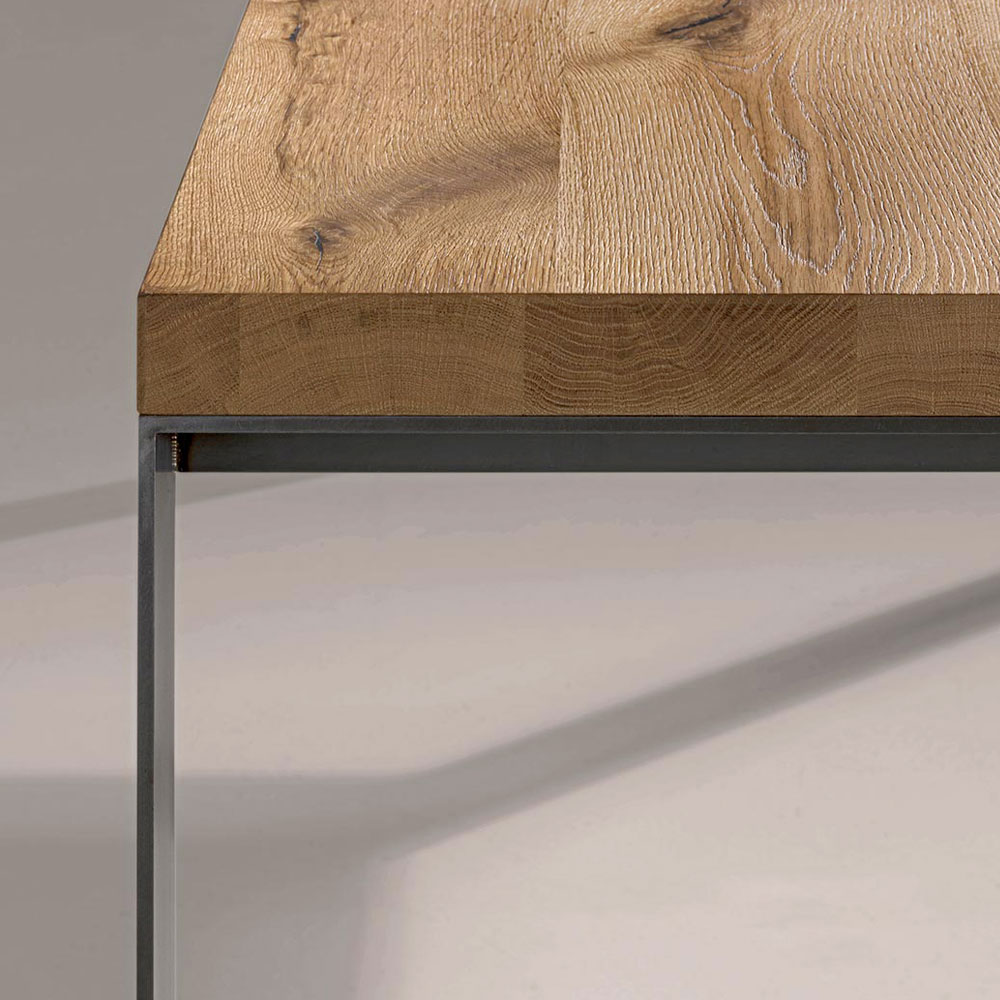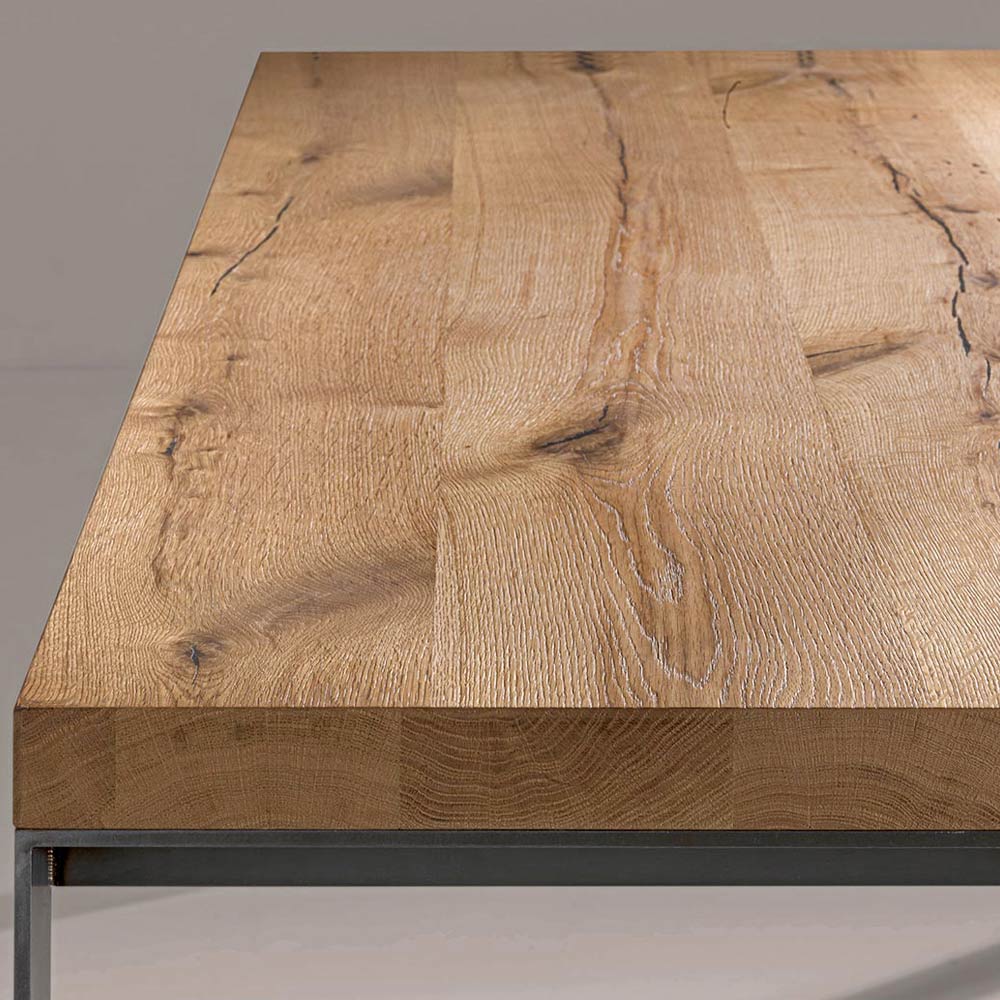 طاولة ثابتة بأرجل معدنية وسطح من خشب البلوط الطبيعي صنع في إيطاليا.