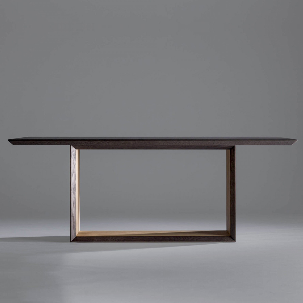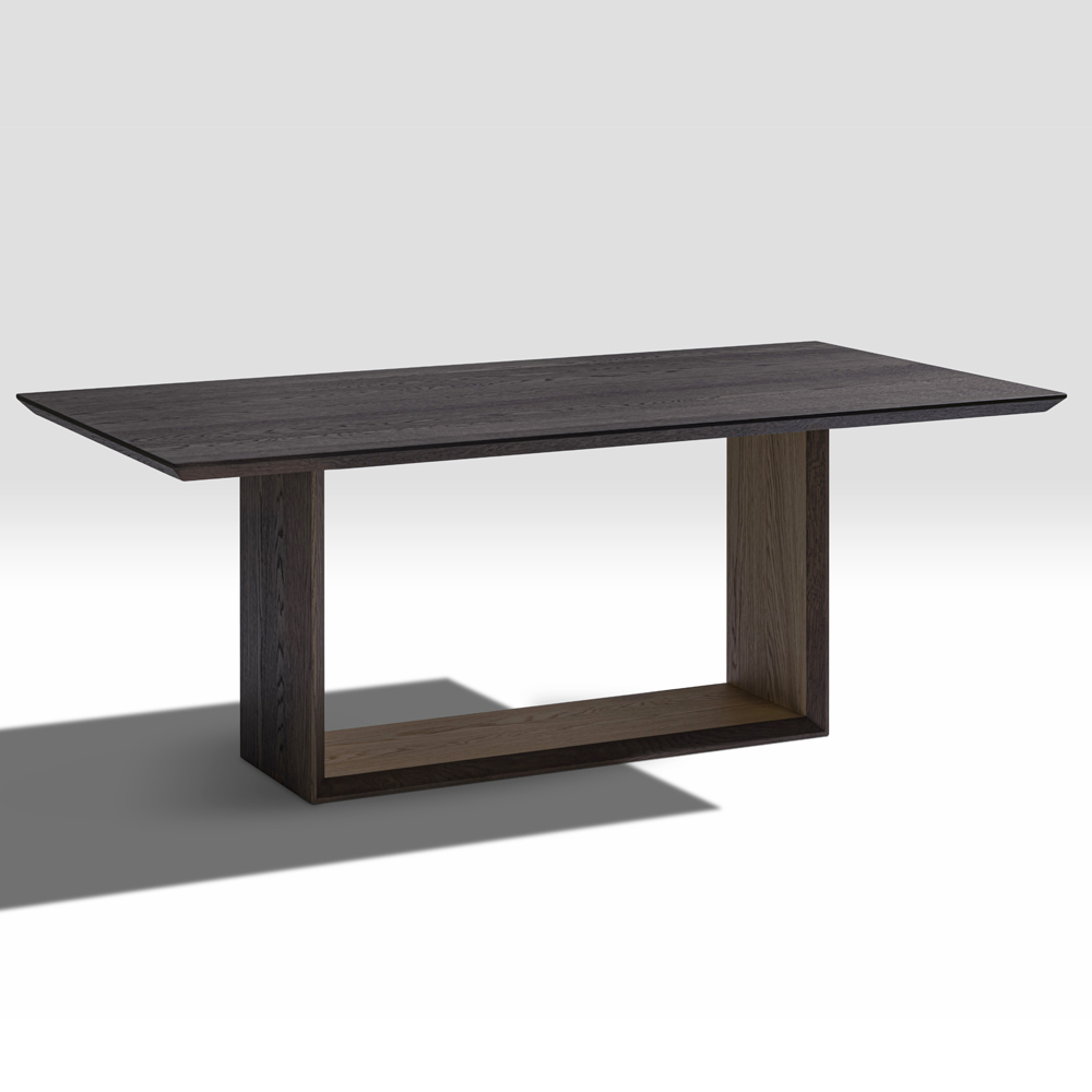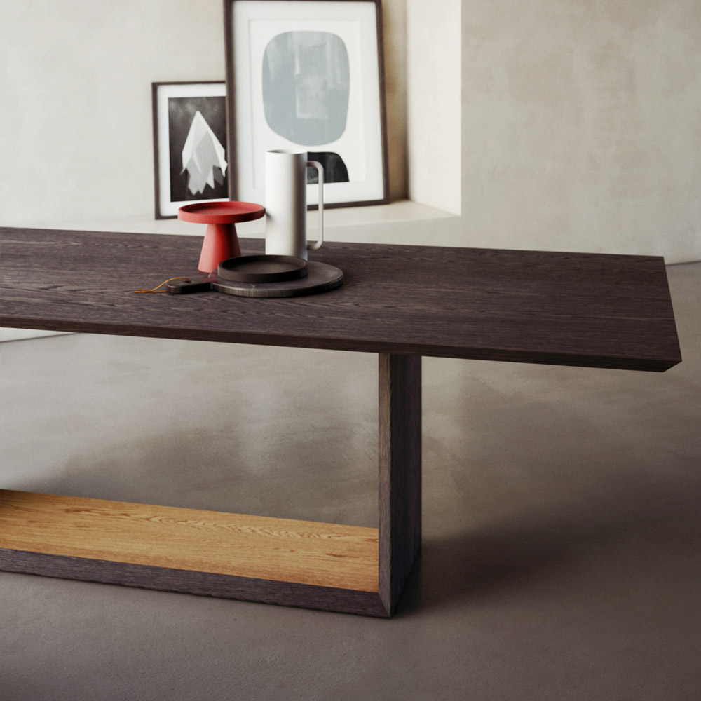 طاولة ثابتة ذات سطح من خشب البلوط المدخن وقاعدة ثنائية اللون صنع في إيطاليا.
