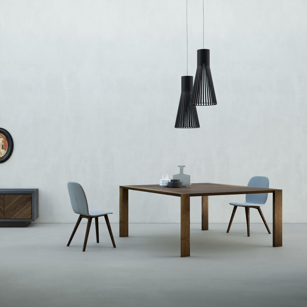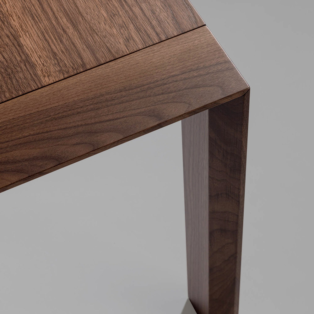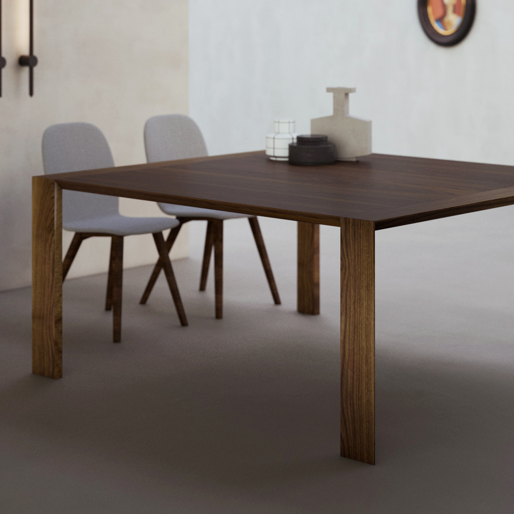 طاولة ثابتة ذات أرجل مشطوفة ومغطاة بطبقة من الخشب الرقائقي ومغطاة في الأعلى بلوح خشب الحور باللون الجوزي الكاناليتو. صُممت الطاولة بأشكال مستقبلية، تُضفي على جوهرها لمسةً من الإشراق، وتمنحها خطوطًا ومنظورات مميزة. تُترجم متانة المواد إلى دافع إبداعي صاغته أيادٍ إيطالية ماهرة، لتحقيق أهداف نوعية وجمالية جديدة. يُصبح الأثاث وسيلةً لتحقيق مساحة شخصية مثالية.