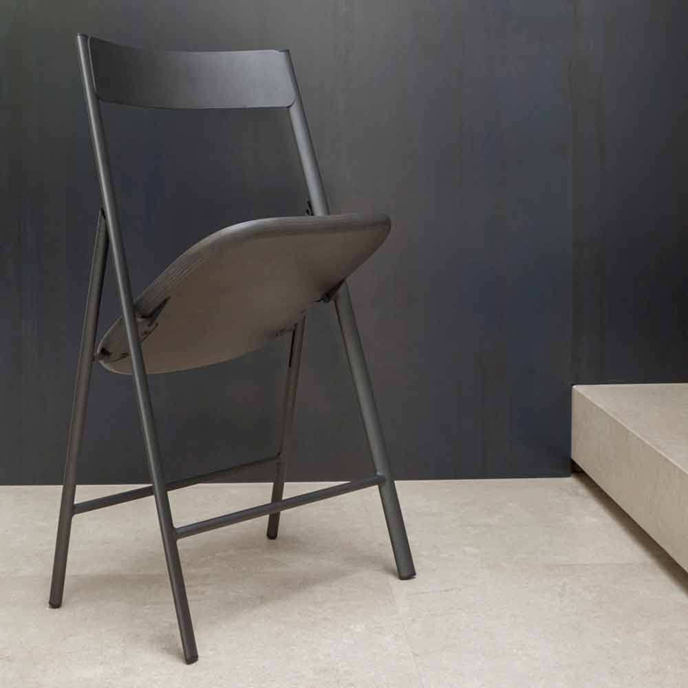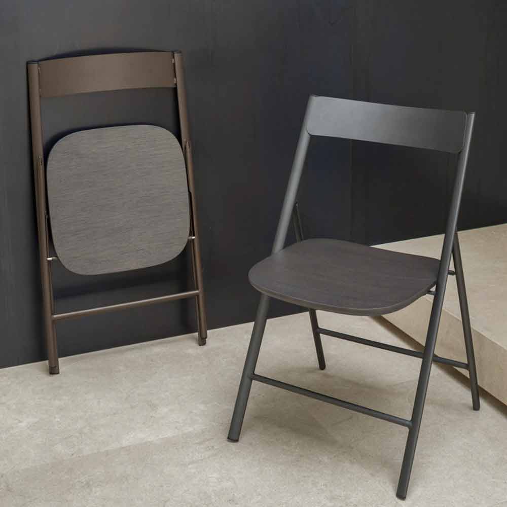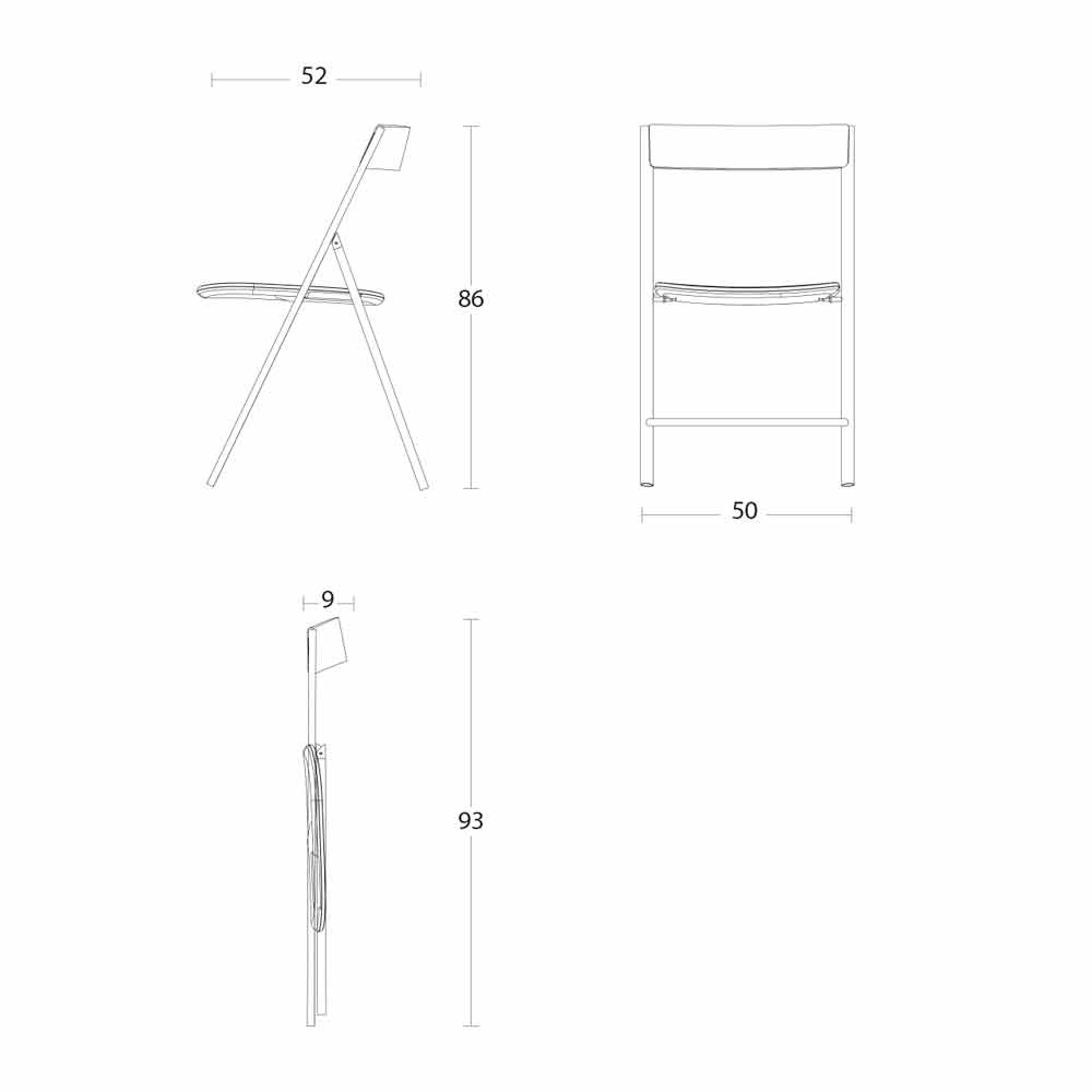 يتميز هذا الكرسي المريح بتصميمه البسيط والمُبسط، المستوحى من الطراز الكلاسيكي، وعملي، وقابل للطيّ لتحقيق أقصى استفادة من المساحة واستخدامه حسب الحاجة. وبفضل أهميته، يُمكن تنسيقه مع مختلف أنماط الأثاث بفضل تصميمه البسيط والأنيق. يتكون الهيكل ومسند الظهر من معدن مطلي بينما المقعد مصنوع من خشب البلوط المقشر ، بالإضافة إلى لوحة من اللوح الخشبي المغطى بطبقة رقيقة جدًا من الخشب.