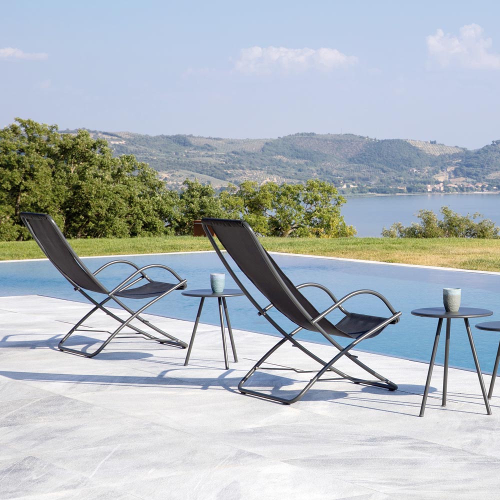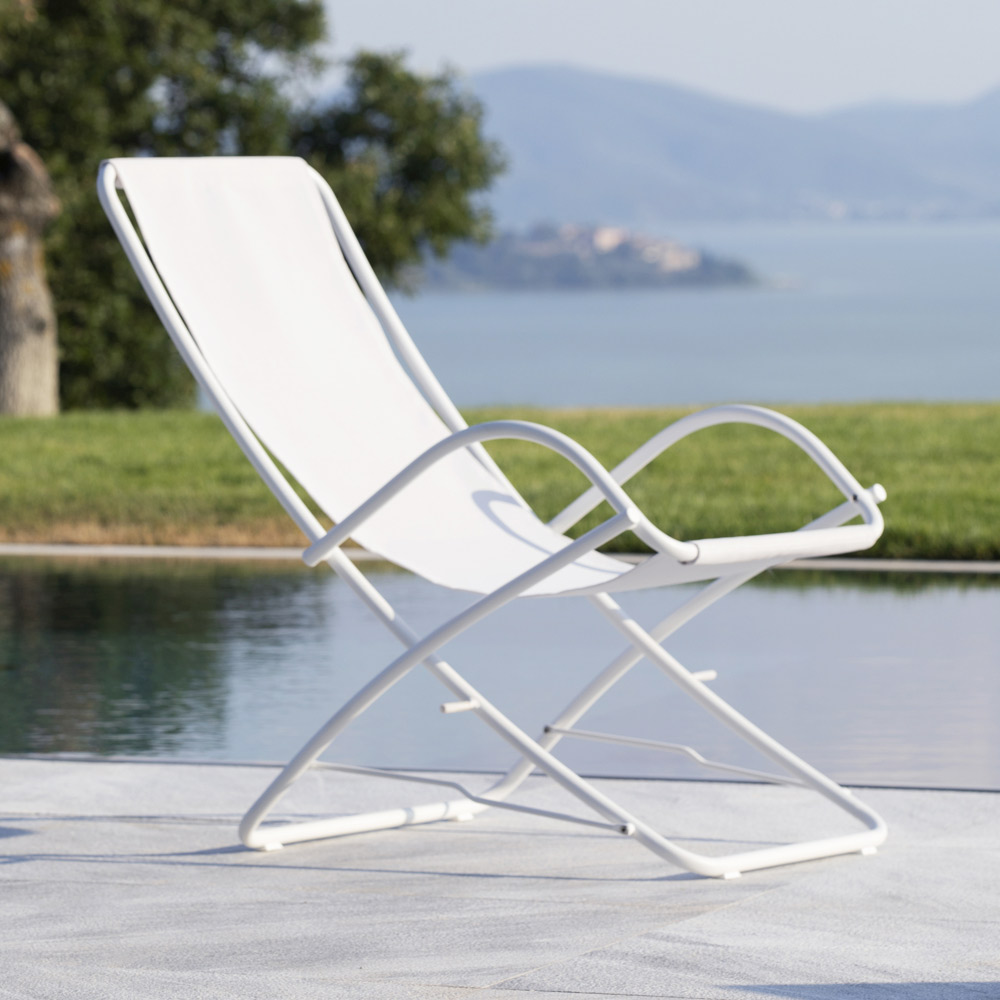 كرسي استرخاء قابل للطي لأثاث الحدائق مصنوع من الفولاذ المجلفن ومقعد Texplast مصنوع يدويًا في إيطاليا. بفضل الجلفنة وخصوصية نسيج Texplast، يتميز الكرسي بمقاومته للتآكل الناتج عن العوامل الجوية كالملح وحموضة المطر، مما يجعله مثاليًا لتأثيث أي مساحة خارجية.