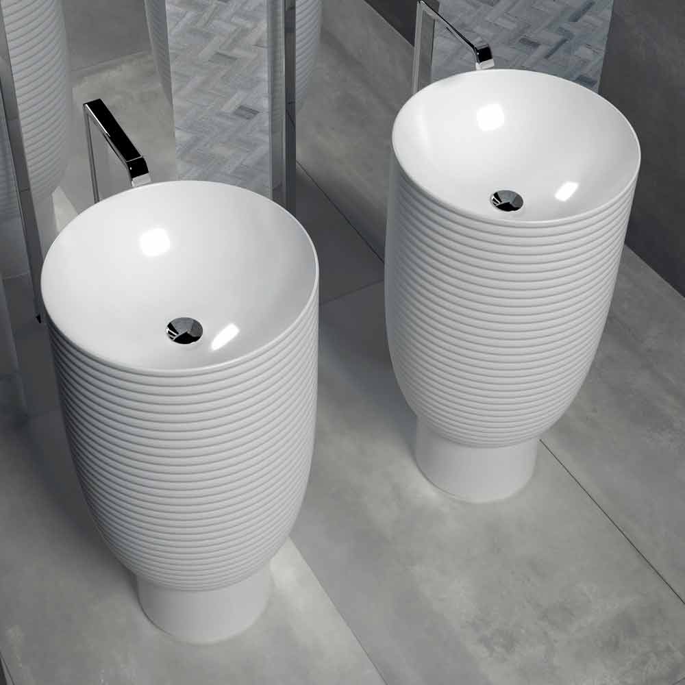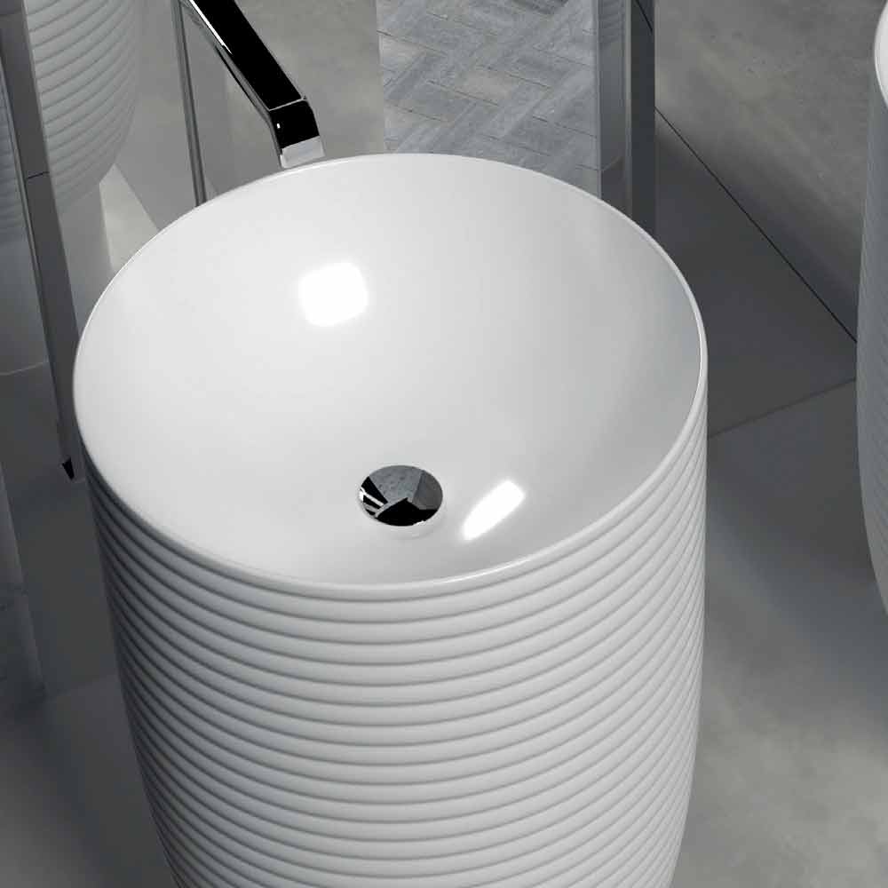 حوض ترابيا جزء من مجموعة تجمع بين العاطفةوالفضول ، مُثيرًا أحاسيس قوية واهتمامًا بالغًا. الحمام بيئة تُفضّل العملي والجمالي على حساب الجمالي. يسمح لك هذا العنصر بعدم التخلي عن أي من هذين الجانبين، حيث يجمع بين الوظيفة والتصميم الحديث المدروس بالتفصيل. المادة المستخدمة هي الخزف الزجاجي ، وهو نوع من السيراميك المزجج ، مطبوخ على درجة حرارة 1200 درجة مئوية . هذه المادة مقاومة للأحماضوالحرارةوالصدماتوالخدوش ، وهي صحية وسهلة التنظيف ولا تتلاشى. كل ذلك بضمان منتج مصنع بالكامل في إيطاليا.