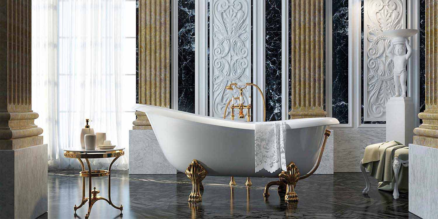 ملحوظة : أقدامها متوفرة بنوعين آخرين من المعادن الثمينة: الكروم والبرونز؛ للحصول عليها، لا تتردد في الاتصال بنا. يتضمن السعر عمود التصريف مع السيفون والأقدام وأقواس التثبيت.
