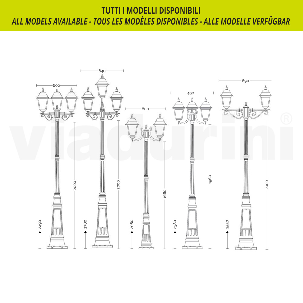 مصباح حديقة مصنوع من هيكل من الألومنيوم المصبوب بلمسة نهائية من أنثراسايت وموزع زجاجي شفاف ، صنع بالكامل في إيطاليا.