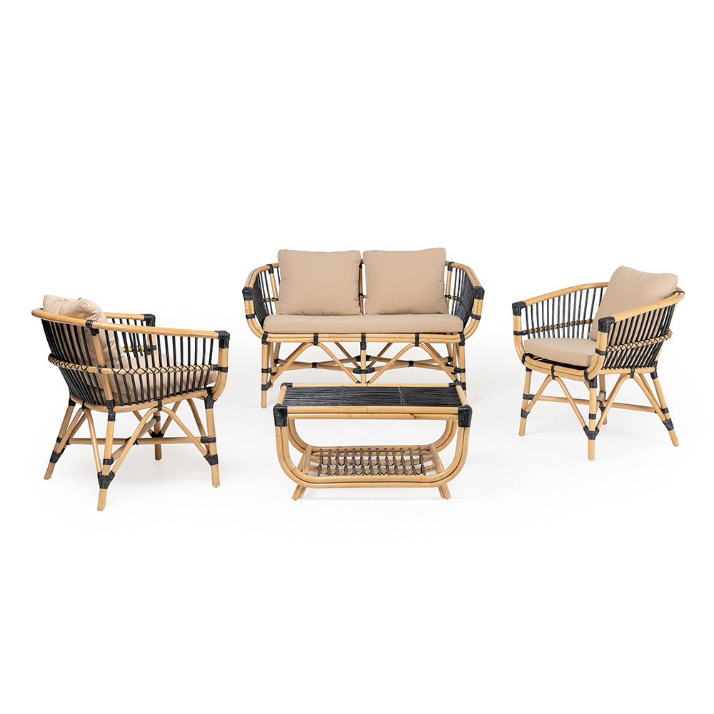 كرسي حديقة مصنوع من الخيزران الطبيعي مع وسائد متضمنة.