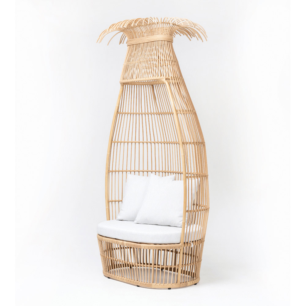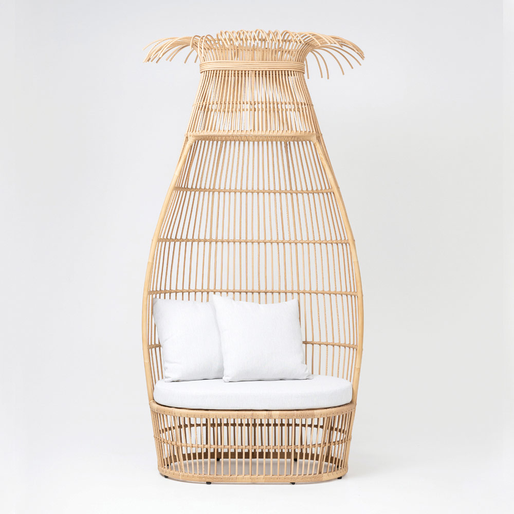 كرسي الحديقة هذا هو ملاذٌ حقيقيٌّ للأناقة والراحة . إطاره البيضاوي الطويل، المصنوع ببراعة من البولي راتان، يُذكّرنا بمنتجعات الشاطئ الخلابة، ويندمج بتناغمٍ مع البيئة الخارجية. تصميمه المفتوح والمُنعش يضمن تدفق الهواء والضوء، بينما يُضفي شكله المنحني شعورًا بالحماية والخصوصية .