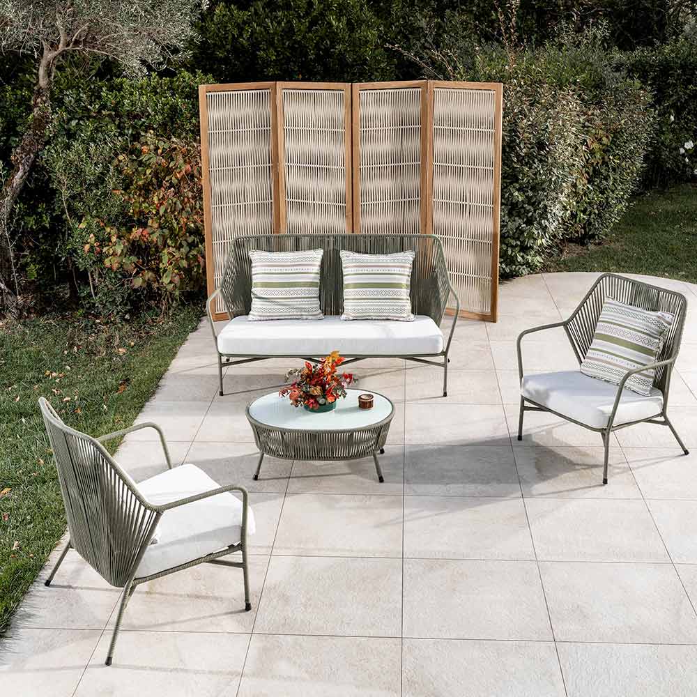 طاولة الحديقة هذه مثالية للاستمتاع بالمساحات الخارجية. تصميمها عصري، بهيكلها الخفيف المصنوع من حبل منسوج، يُضفي لمسة من الشفافية والظلال، مما يُضفي عمقًا وجمالًا بصريًا على حديقتك أو شرفتك.