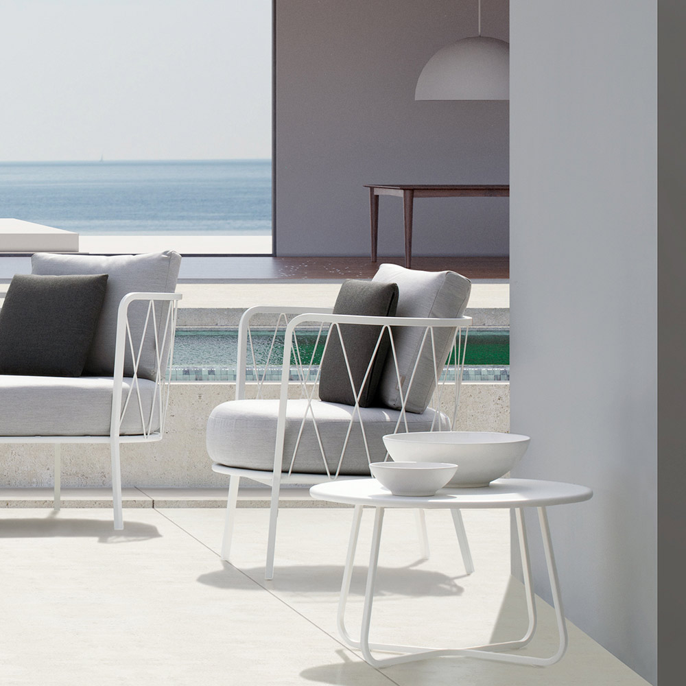 يُضفي التصميم العصري وتداخل الأشكال الهندسية الأساسية لهذه المجموعة جوًا ديناميكيًا وعمليًا . مع هذه القطعة من الأثاث، ستُصبح أي غرفة معيشة خارجية مساحةً انسيابيةً تندمج بإتقان مع أي نوع من البيئات.