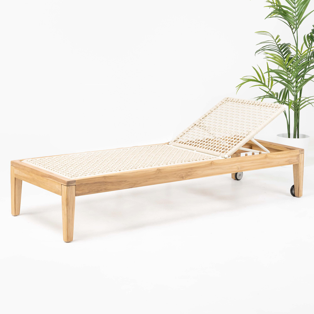 كرسي استرخاء خارجي مصنوع من خشب الساج ومنسوج بالحبال.