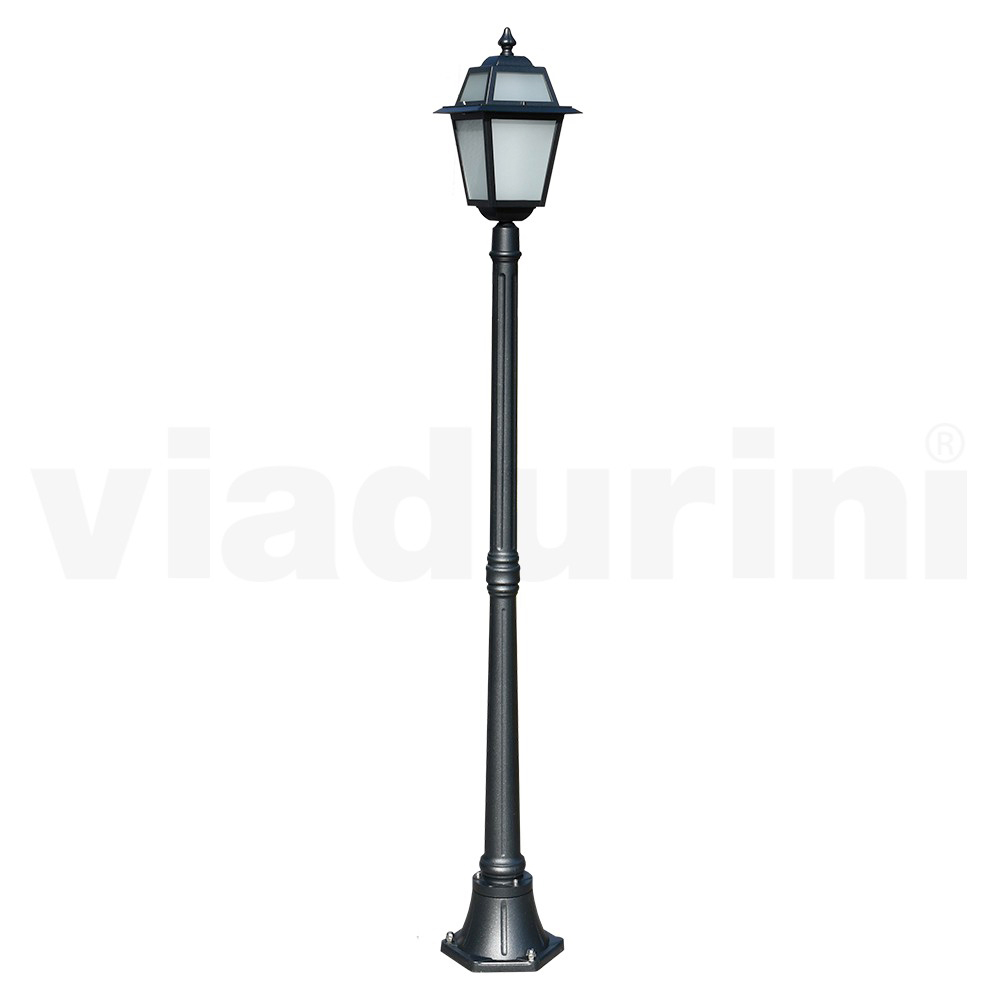 مصباح حديقة مصنوع من هيكل من الألومنيوم المصبوب بلمسة نهائية من أنثراسايت وموزع زجاجي مصقول بالرمل ، صنع بالكامل في إيطاليا.