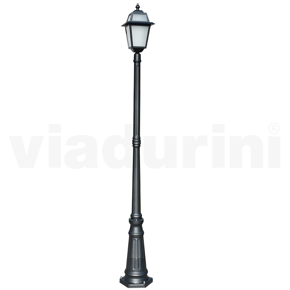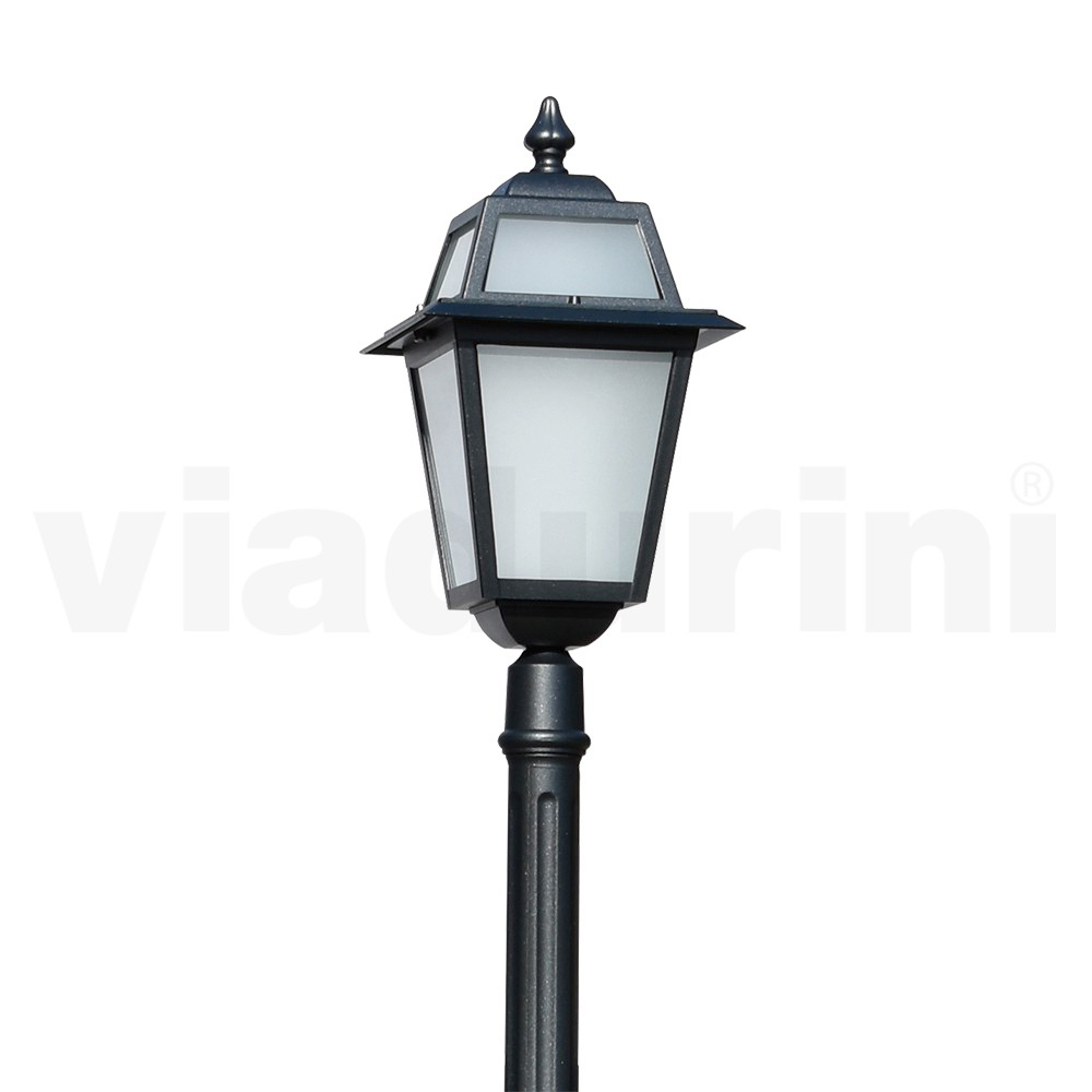 مصباح حديقة مصنوع من هيكل من الألومنيوم المصبوب بلمسة نهائية من أنثراسايت وموزع زجاجي مصقول بالرمل ، صنع بالكامل في إيطاليا.