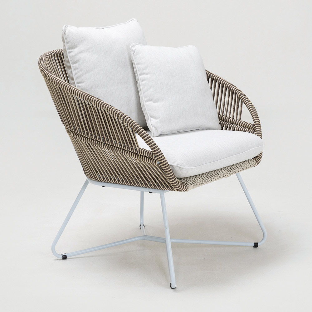 Olefin/PP ROPE مع لمسة نهائية باللون الأبيض اللؤلؤي ثنائي اللون والكابتشينو ووسادة مقعد وظهر من
