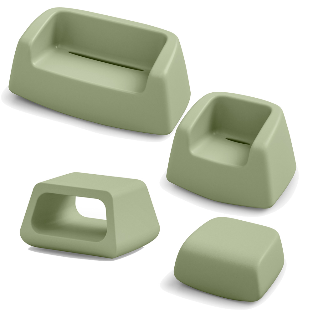 بفضل توافرها بسبعة ألوان مختلفة، تُعدّ هذه الصالة مثاليةً لإضفاء لمسةٍ أنيقةٍ على أي مساحة خارجية، حيث تُضفي لونًا وإضاءةً على المكان دون إغفال الجانب العملي والوظيفي . تتميز هذه الصالة بخفةٍ ملحوظة، ما يجعلها سهلة النقل والترتيب حسب رغباتك وتفضيلاتك. يتضمن التكوين كرسيًا بذراعين وأريكة مصحوبة بطاولة قهوة ووسادة.