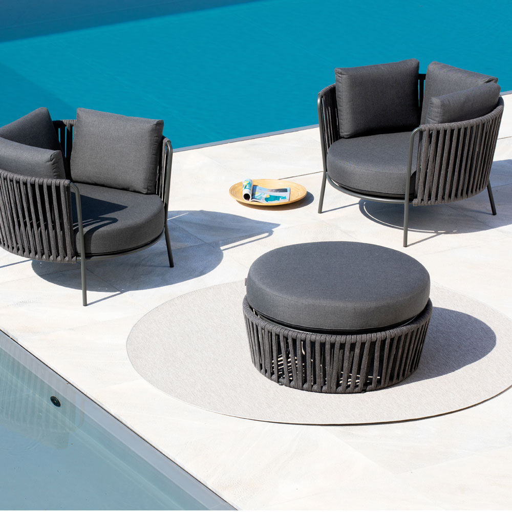 يُضفي التصميم المعاصر وتداخل الأشكال الهندسية الأساسية جوًا ديناميكيًا وعمليًا . مع هذه القطعة من الأثاث، ستُصبح أي غرفة معيشة خارجية مساحةً انسيابيةً تندمج بإتقان مع أي نوع من المساحات الخارجية.