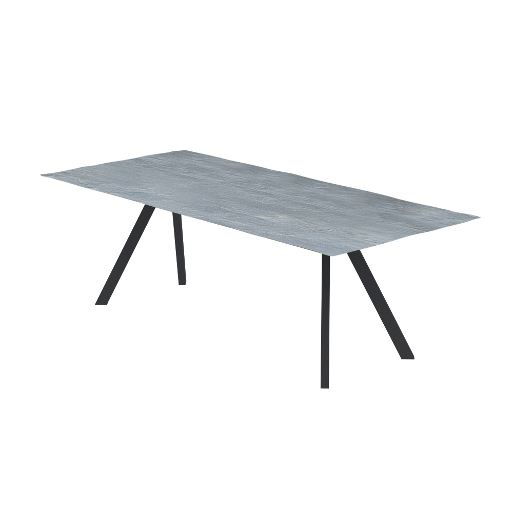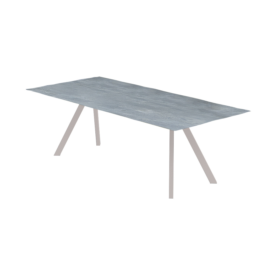 طاولة خارجية مصنوعة في إيطاليا بقاعدة من الفولاذ المجلفن وسطح من HPL . المعالجة الخاصة للفولاذ تجعل قاعدة الطاولة مقاومة للعوامل الجوية المسببة للتآكل، مثل المطر الحمضي والملح. HPL مادة مناسبة للاستخدام الخارجي ، تتكون من طبقات من ألياف السليلوز المشبعة براتنجات حرارية، وتتميز بمقاومة عالية للعوامل الجوية.