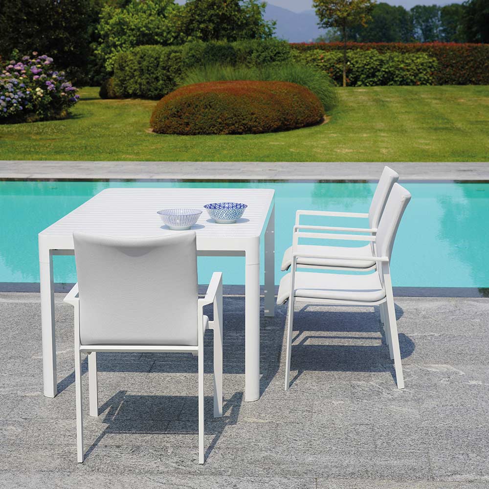 طاولة خارجية قابلة للتمديد حتى 240 سم مصنوعة من الألومنيوم بتصميم عصري.