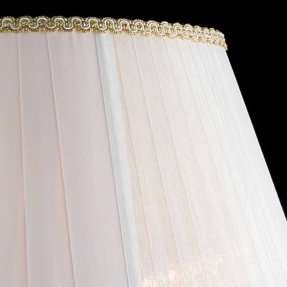 مصباح مصمم من زجاج كهرماني مطلي بالذهب والكريستال. غطاء مصباح من الأورجانزا والبونجي.
