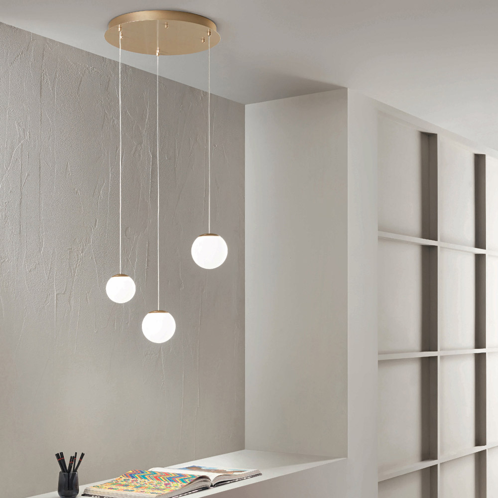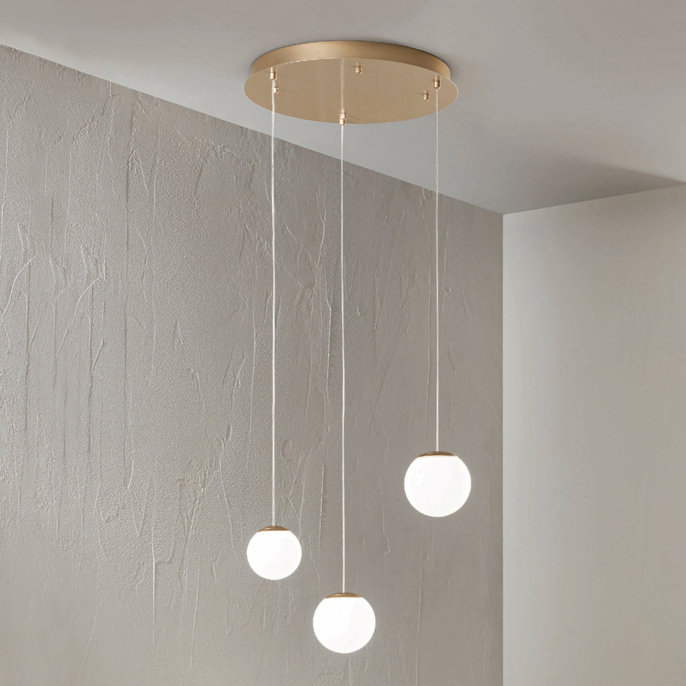 ثرياتم إنتاجها بالكامل في إيطاليا مصنوعة من معدن مطلي باللون الذهبي و 3 مصابيح LED مع غطاء مصباح زجاجي ملون اختياري قابل للإزالة عن طريق فك الكرة الزجاجية. يهدف هذا المنتج إلى تعزيز التقاليد من خلال نهج عصري ، حيث تجتمع الأناقة والرقي والابتكار لابتكار تصاميم جديدة تُضفي على أي بيئة لمسةً من الذوق الرفيع والطابع المميز. ومن أبرز مميزاته تميز الأشكالوجودة المواد المستخدمةوتميز مصدر الإضاءة .