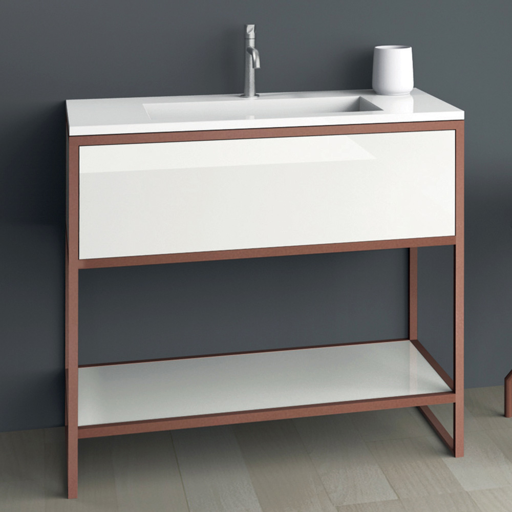 أثاث حمام أرضي من معدن النحاس وخشب إم دي إف أبيض، صنع في إيطاليا - سيزكو