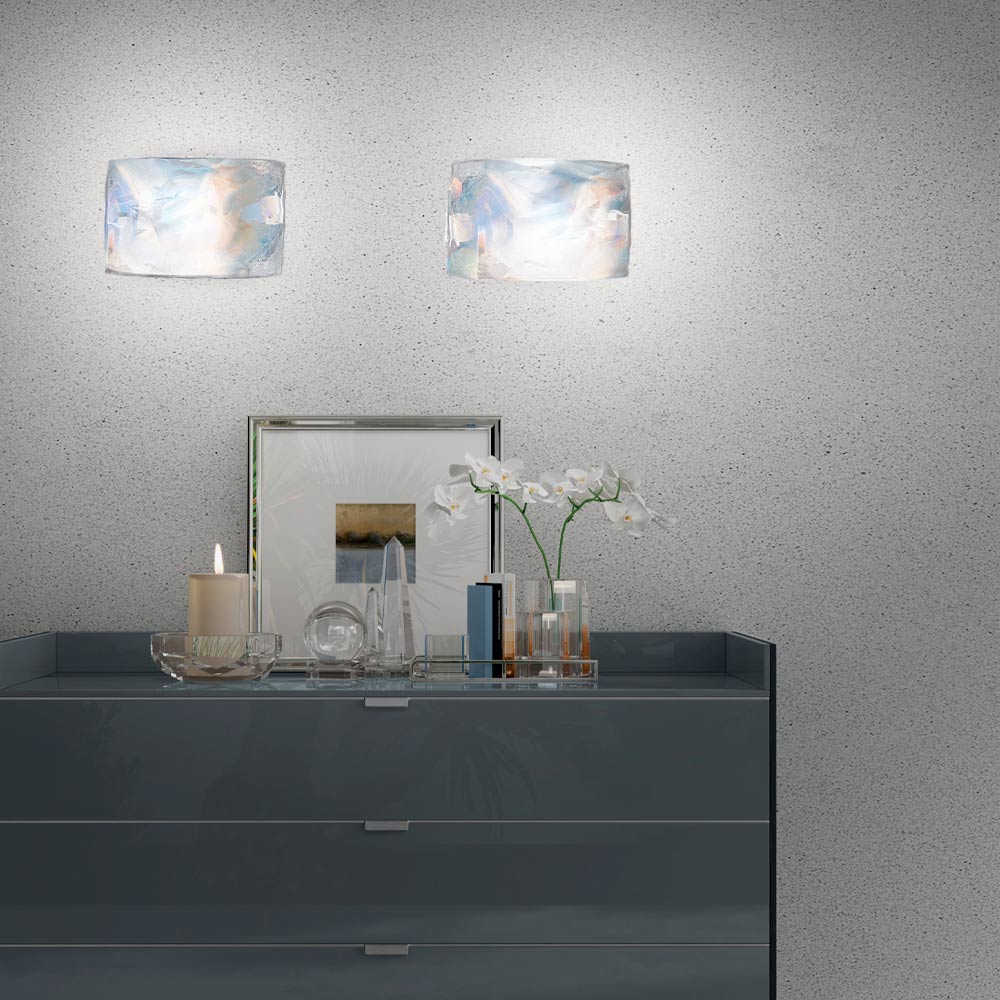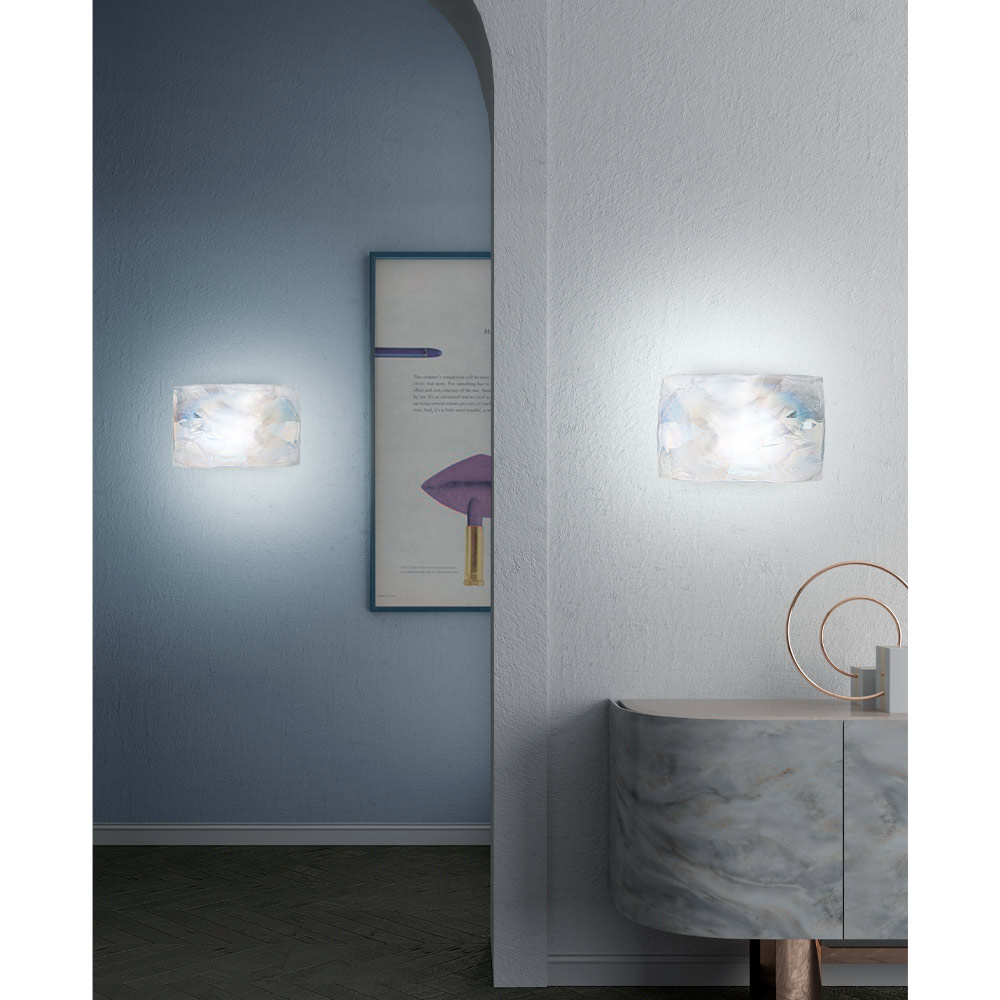 مصباح حائط مصنوع يدويًا من الزجاج المنفوخ داخل أفران المناطق الداخلية لمدينة البندقية في إيطاليا، وذلك بفضل نقل التقنيات القديمة المستخدمة على مر السنين من قبل أساتذة الزجاج الإيطاليين لمعالجة زجاج مورانو.