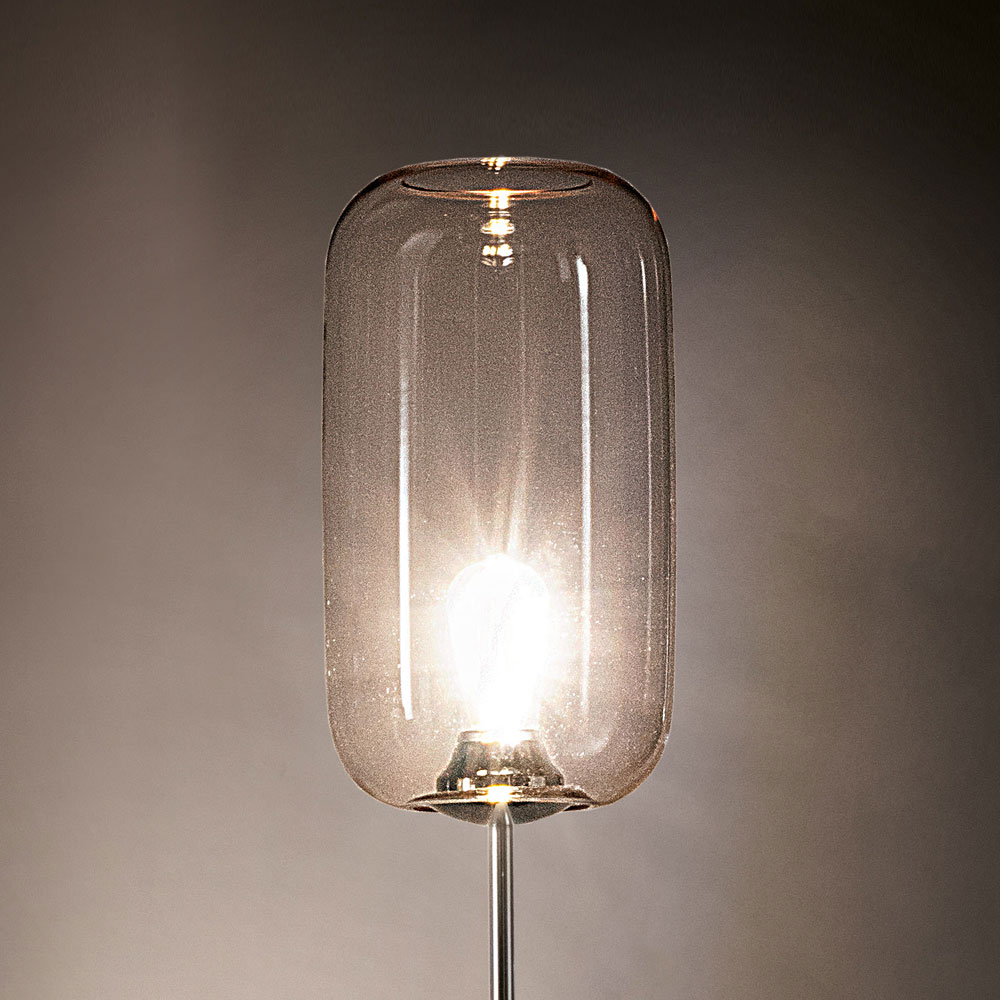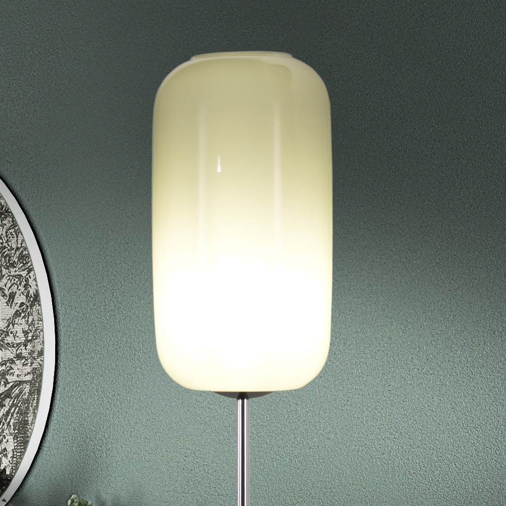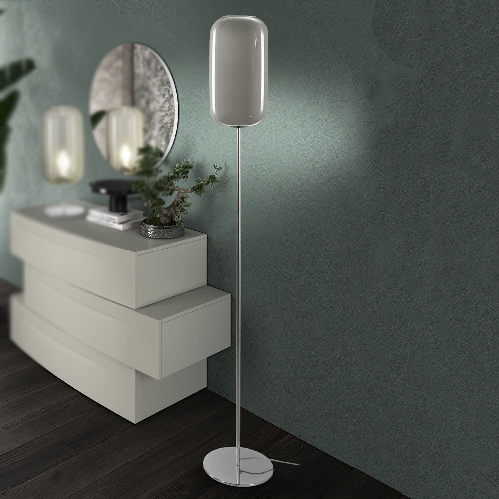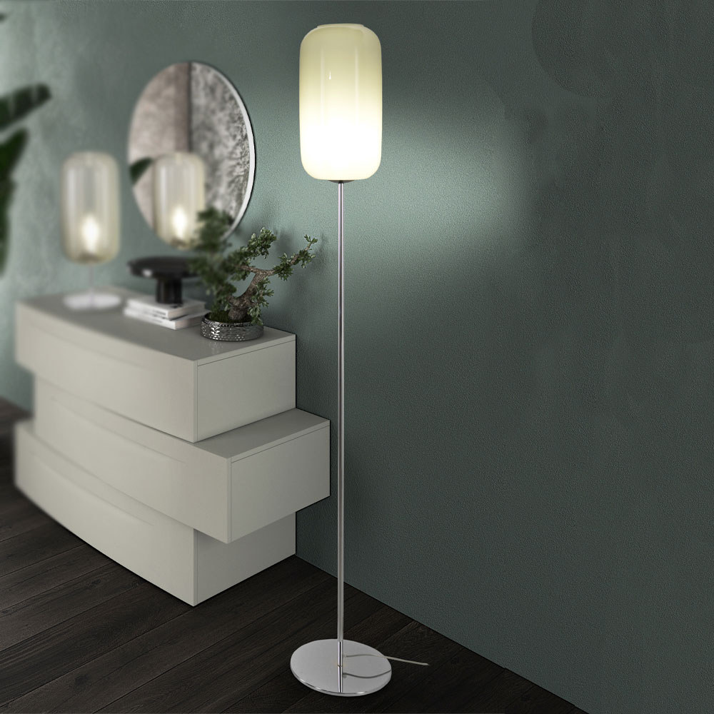 مصباح أرضي عصري مصنوع يدويًا من زجاج البندقية المنفوخ مع قاعدة معدنية.