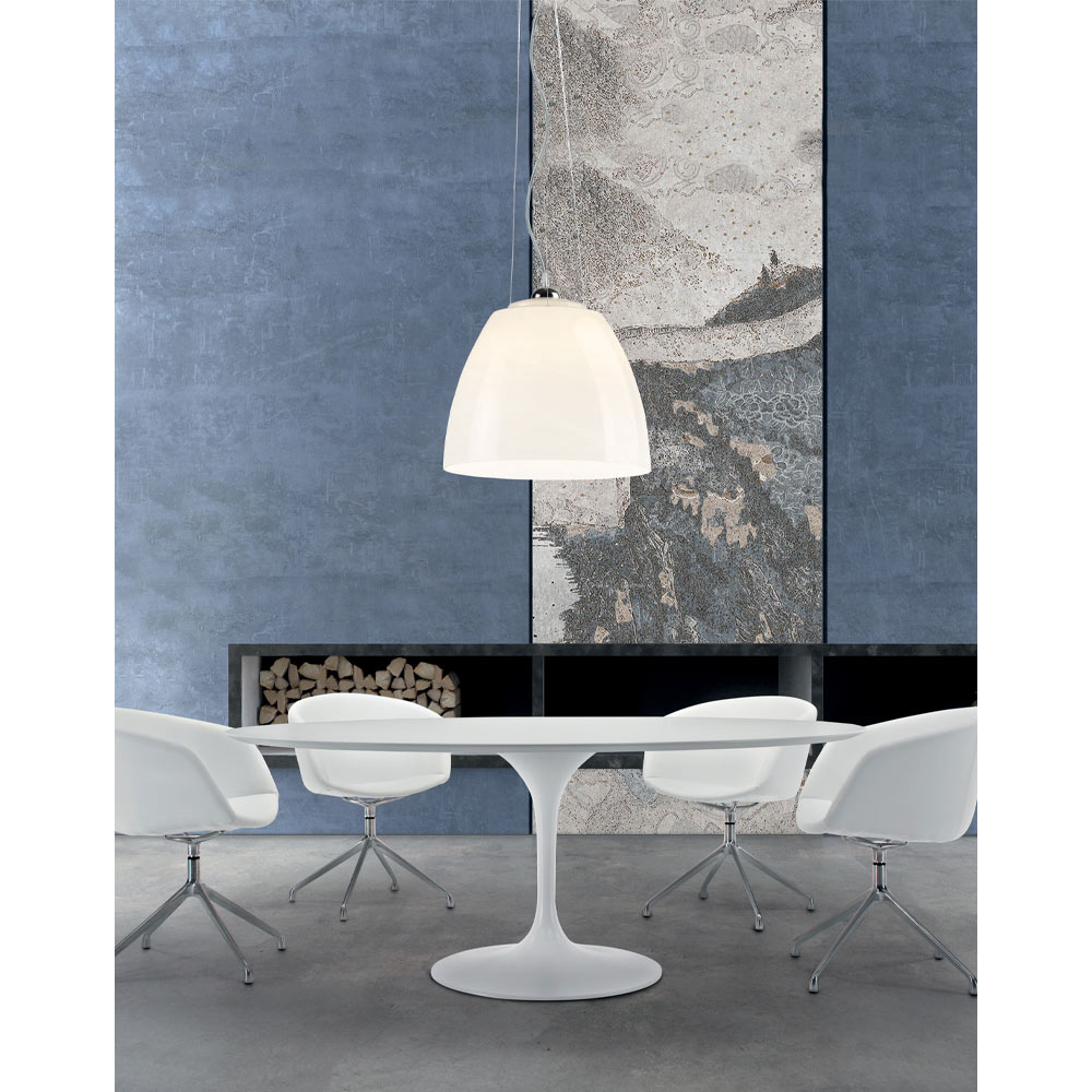 عمل فني بأشكال أساسية مصنوعة من الزجاج المنفوخ يدويًا، قادر على إعطاء الحياة لإضاءة رائعة ذات شخصية رائعة، مما يسمح لك بإضفاء الضوء والشخصية على أي بيئة منزلية.