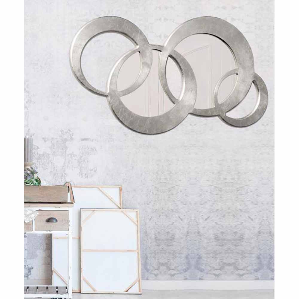 مرآة حائط مزخرفة يدويًا باللون الفضي، مع مرآتين، تصميم عصري مرآة حائط بتصميم عصري. هذه المرآة الأنيقة مصنوعة يدويًا من خشب MDF مزخرف بورق فضي لامع. بأربع دوائر ومرآتين، تُعدّ "بول سيلفر" قطعة فنية بحق! هذه المرآة الحائطية الأصلية هي المرآة المثالية لتزيين منزلك أو مكتبك أو متجرك بأناقة. يمكن تعليقه عموديا وأفقيا. صنع في إيطاليا.