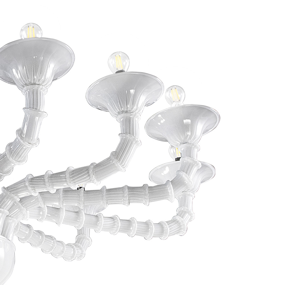 ثريا من زجاج الريزونيكو الأبيض المنفوخ يدويًا في البندقية، على الطراز الكلاسيكي.