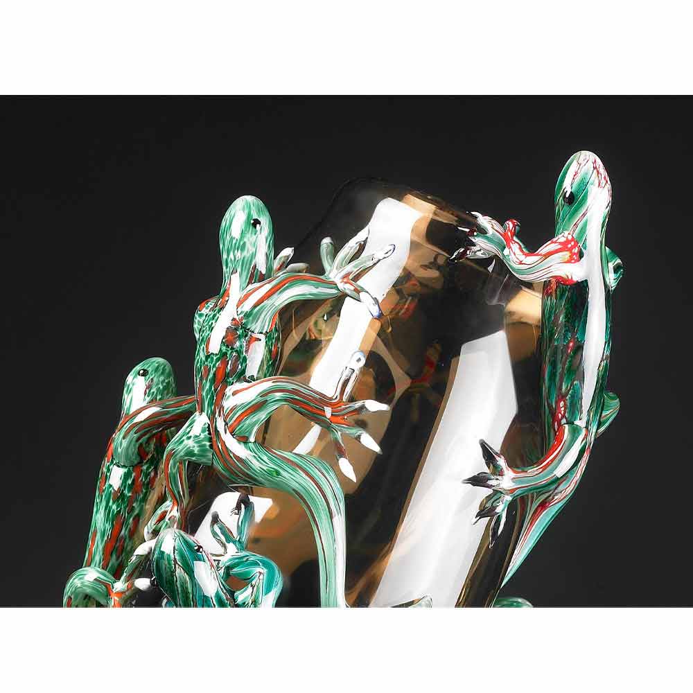 مزهرية زجاجية زخرفية حديثة مصنوعة يدويًا في إيطاليا.
