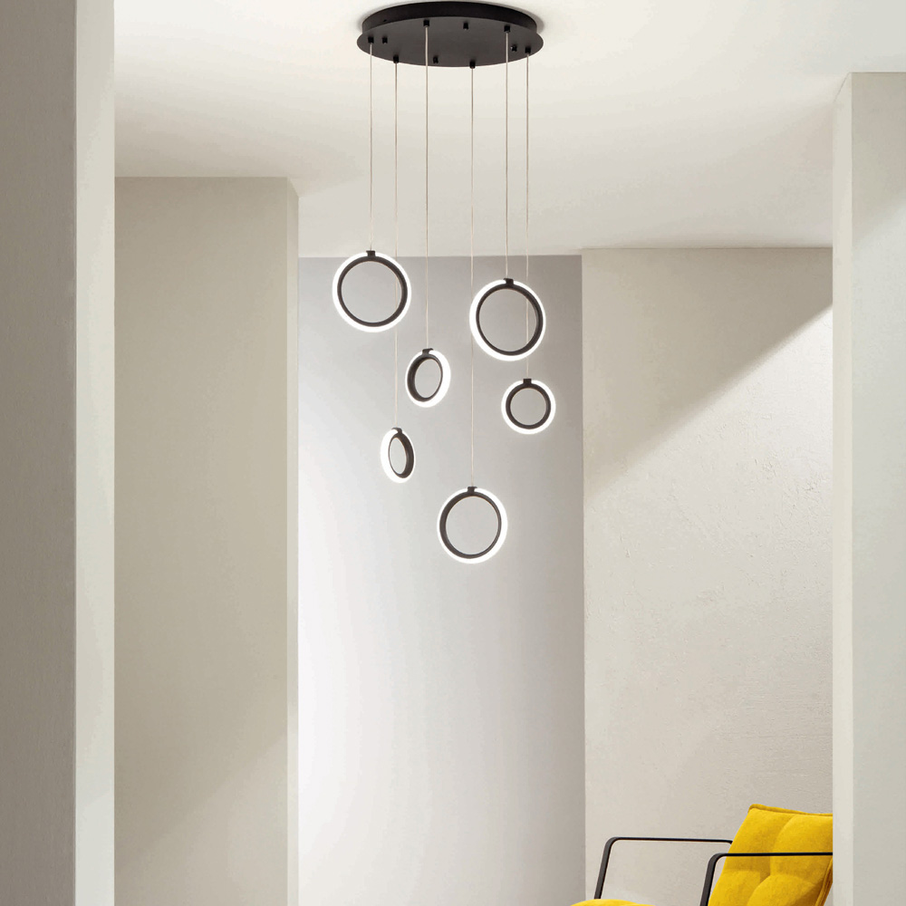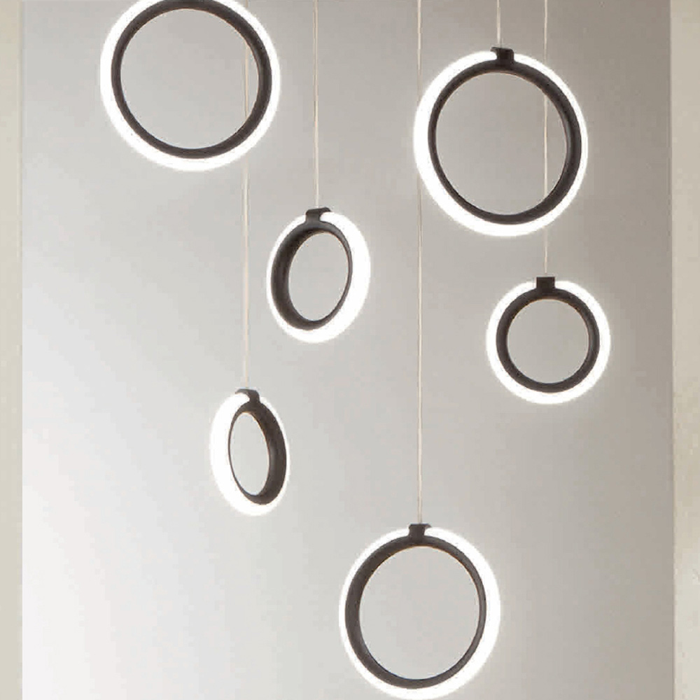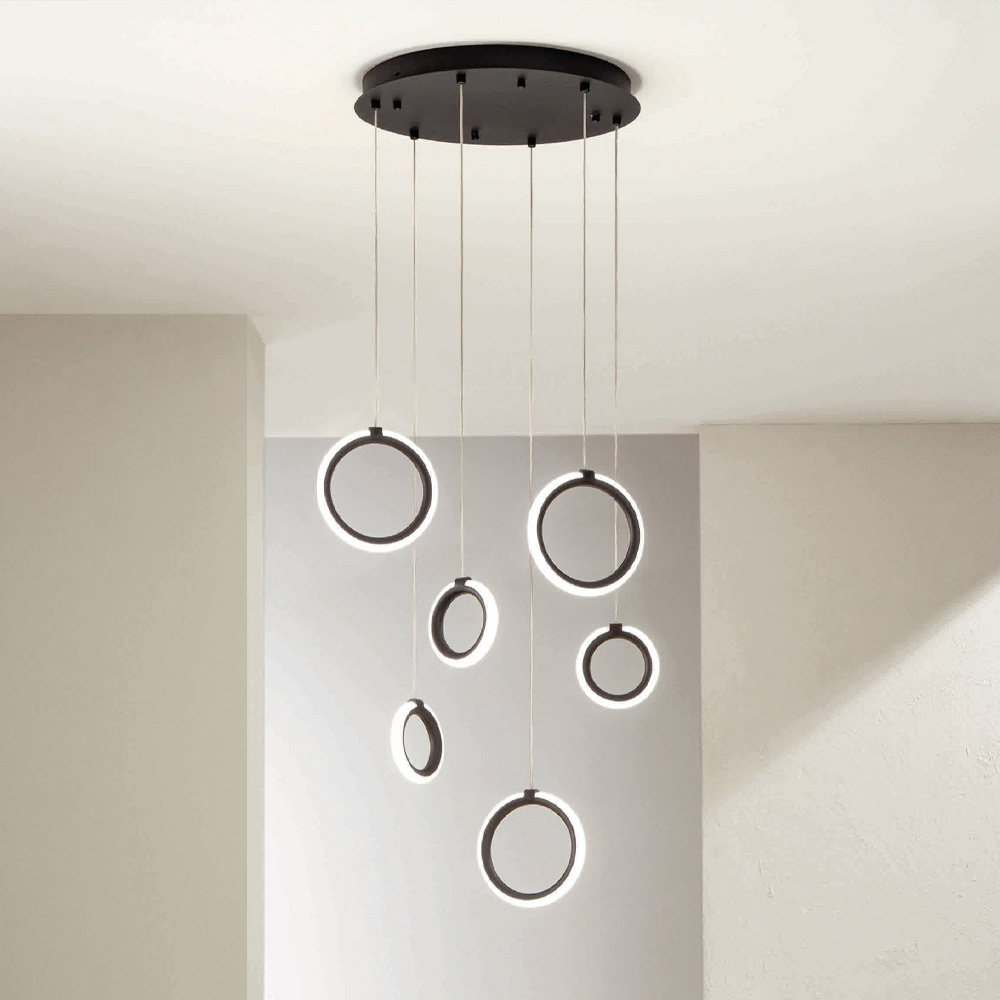 ثريامصنعة بالكامل في إيطاليا مصنوعة من المعدن المطلي باللون الأسود مع كابلات ذات طول قابل للتعديل و 6 مصابيح LED دائرية قابلة للتعتيم . يهدف هذا المنتج إلى تعزيز التقاليد من خلال نهج عصري ، حيث تجتمع الأناقة والرقي والابتكار لابتكار تصاميم جديدة تُضفي على أي بيئة لمسةً من الذوق الرفيع والطابع المميز. ومن أبرز مميزاته تميز الأشكالوجودة المواد المستخدمةوتميز مصدر الإضاءة .