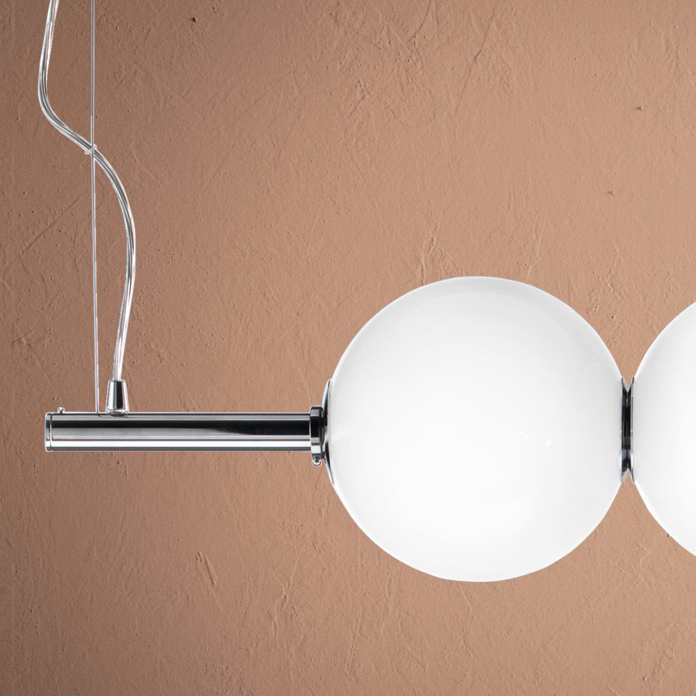 مزيج مثالي من الابتكار والرقي مصنوع من الزجاج المنفوخ يدويًا والمصمم لإعطاء الحياة للإضاءة مع تأثير عاطفي قوي قادر على خلق أجواء فريدة ومرحبة مثالية للمساحات المنزلية المخصصة للمشاركة.