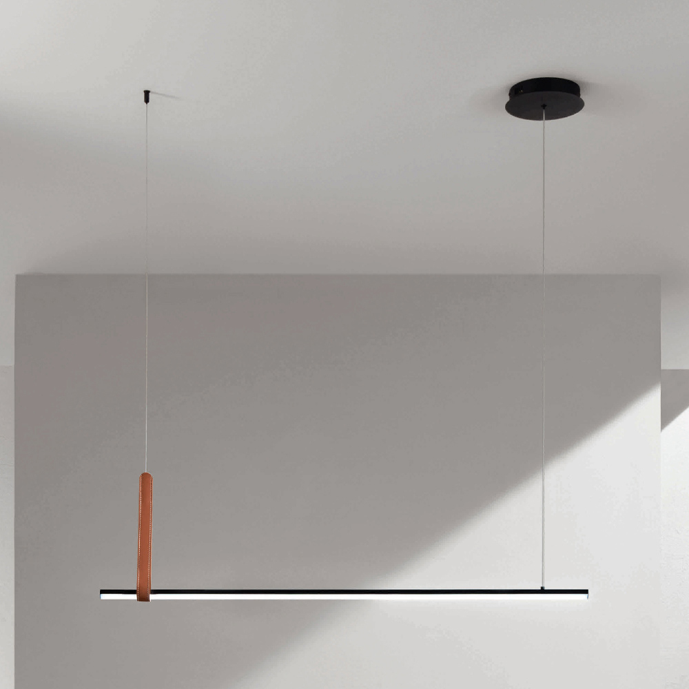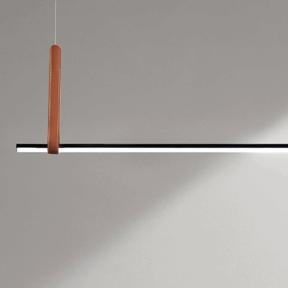 مصباح معلقتم إنتاجه بالكامل في إيطاليا مصنوع من معدن مطلي باللون الأسود وعنصر جلديصديق للبيئة مع كابلات ذات طول قابل للتعديلوإضاءة LED قابلة للتعتيم. يهدف هذا المنتج إلى تعزيز التقاليد من خلال نهج عصري ، حيث تجتمع الأناقة والرقي والابتكار لابتكار تصاميم جديدة تُضفي على أي بيئة لمسةً من الذوق الرفيع والطابع المميز. ومن أبرز مميزاته تميز الأشكالوجودة المواد المستخدمةوتميز مصدر الإضاءة .