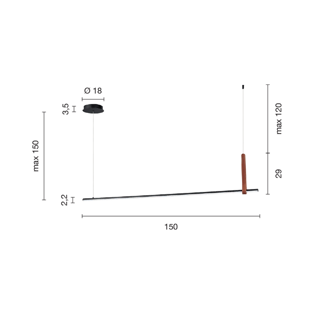 الخصائص التقنية للضوء بطول 150 سم: