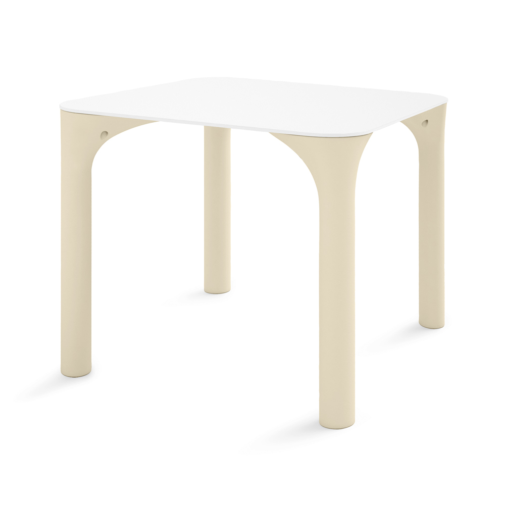 طاولة الطعام هذه مصنوعة بالكامل في إيطاليا بهيكل من البولي إيثيلين . أما سطحها ، المصنوع من HPL ، فيجعلها مقاومة للماء والتآكل، مما يمنحها تنوعًا كبيرًا بفضل استخدام مواد تُسهم في تصميمها الأنيق والبسيط .