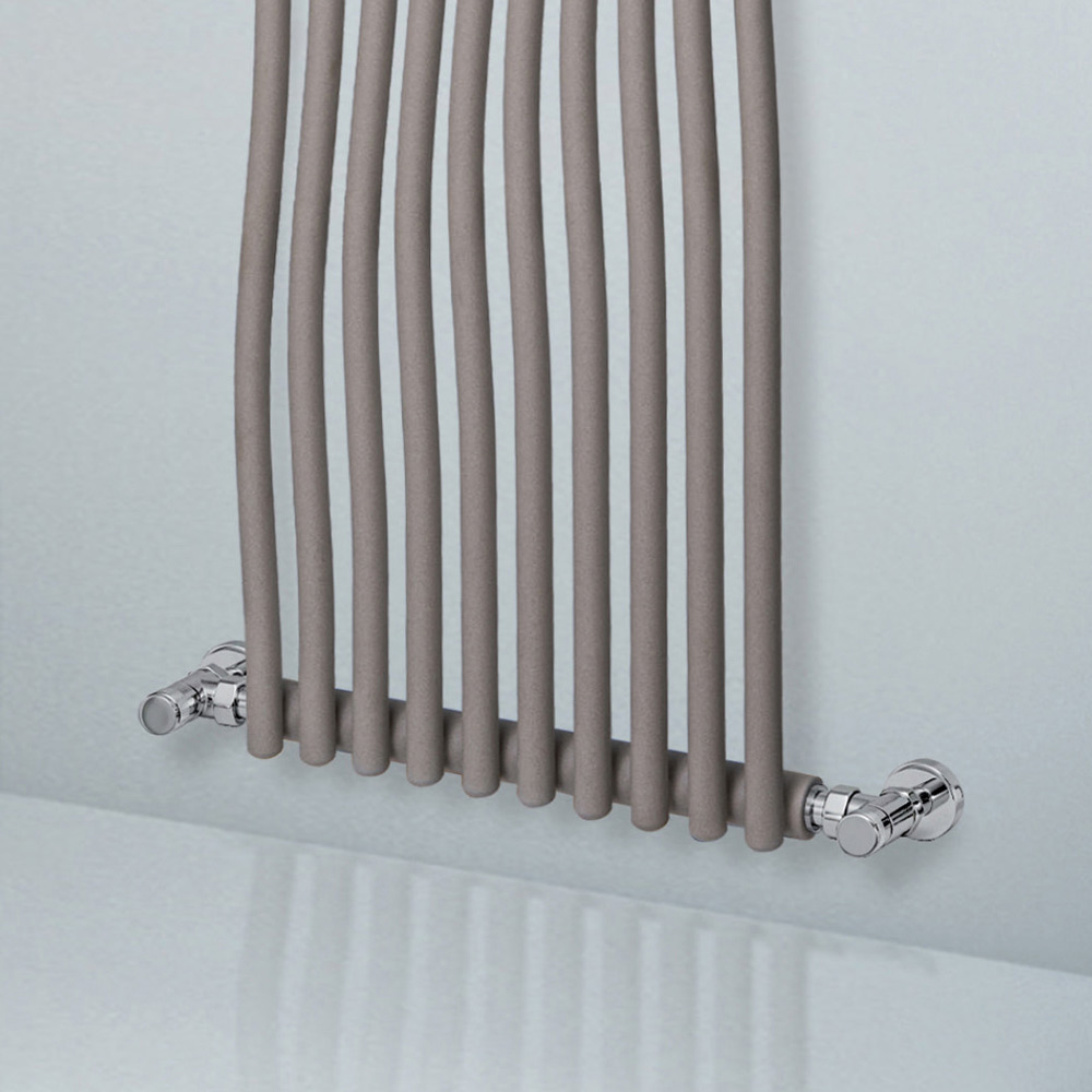 مشعاع هيدروليكي من الفولاذ الكربوني بطبقة نهائية من QUGS، يتكون من سلسلة من العناصر الرأسية المنحنية بقطر 2.2 سم، ملحومة على مشعبات أفقية بقطر 3.5 سم. صُنع بالكامل في إيطاليا، ويشمل طقم التثبيت الجداري، وصمام التهوية، والغطاء الواقي . تُنفَّذ كل مرحلة من مراحل الإنتاج في مصنع بالقرب من تريفيزو، على بُعد بضعة كيلومترات من البندقية، حيث الجودة هي الهدف الدائم والمُتَّبع. الجودة مرادفةٌ للاهتمام الشديد بالتفاصيل واختيار أجود المواد . وهكذا وُلد هذا المُشعّ بتصميمه الأنيق ووظائفه العملية في أبهى صورها.