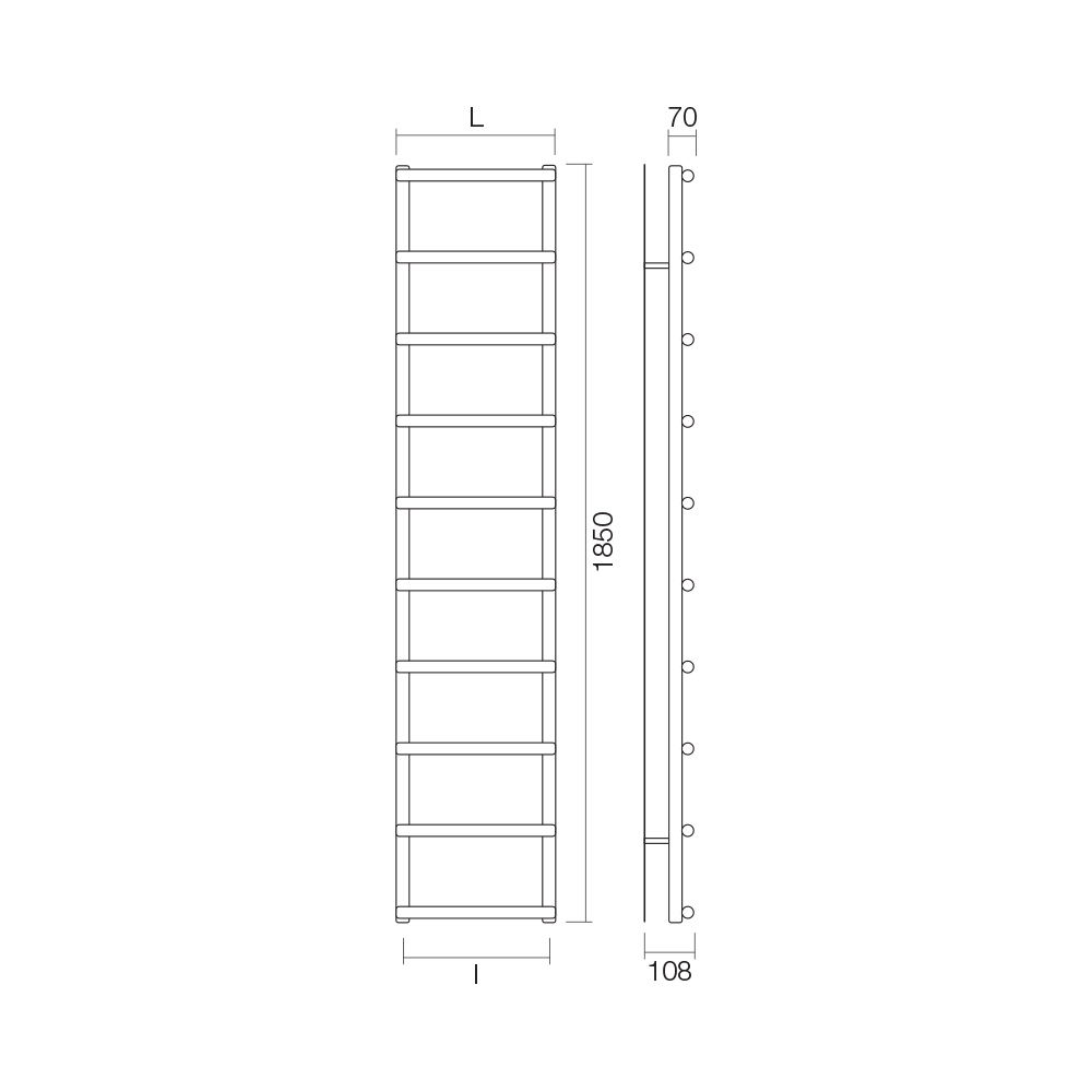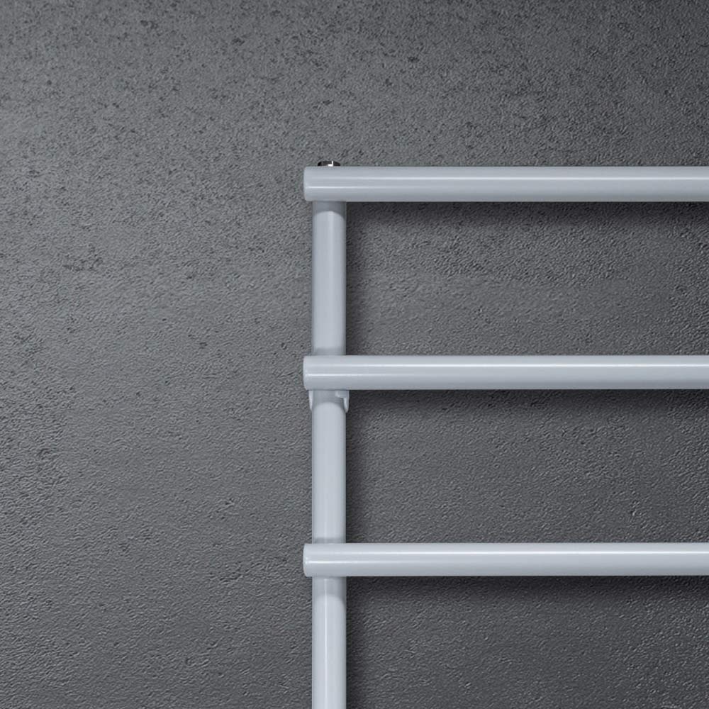 سخان مناشف هيدروليكي من الفولاذ الكربوني بلمسةنهائية رمادية فاتحة، يتكون من سلسلة من العناصر الأفقية بقطر 3.5 سم، ملحومة على مشعبات رأسية بقطر 3.5 سم. صُنع بالكامل في إيطاليا، ويشمل طقم التثبيت على الحائط، وصمام التهوية، وسدادة الستارة . الإنتاج والبحث والتصميم والتطوير هي ثمرة العمل المتقن في مصنع بمدينة تريفيزو، على بُعد بضعة كيلومترات من البندقية، والذي يضمن جودة منتج مصنوع بالكامل في إيطاليا. الجودة المنشودة مرادفة للاهتمام الدقيق بالتفاصيل واستخدام أجود المواد .
