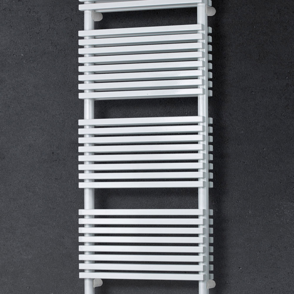 سخان منشفة هيدروليكي من الفولاذ الكربوني بلمسة نهائية بيضاء لامعة نقية يتكون من سلسلة مزدوجة من العناصر الأفقية مع قسم مربع 2 سم ملحوم على مشعبات رأسية بقطر 3.5 سم، مصنوع بالكامل في إيطاليا مع مجموعة تثبيت الحائط وصمام التهوية وسدادة الستارة المضمنة . هذا المنتج أكثر من مجرد مصدر للألوان، بل هو قطعة أثاث حقيقية تُضفي طابعًا شخصيًا على البيئات وتُكملها. ما نهدف إلى ضمانه هو التكامل بين التصميم والوظيفة، لنقدم منتجًا ليس جميلًا من الناحية الجمالية فحسب، بل عمليًا وفعالًا أيضًا.
