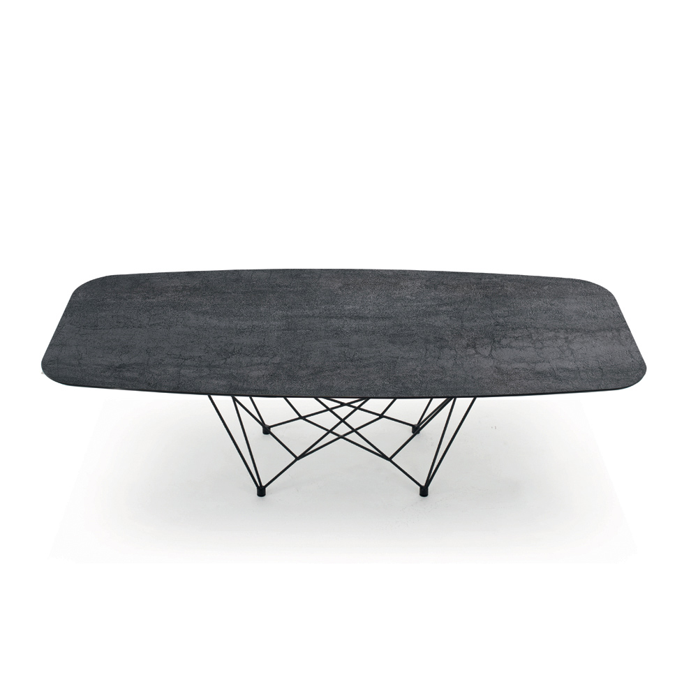 طاولة طعام مصنوعة في إيطاليا، بسطح برميلي الشكل من سيراميك لامينام وقاعدة من الفولاذ المطلي باللون الأسود . تجمع هذه الطاولة بين العملية والتصميم الأنيق، ما يجعلها قطعة أثاث راقية تُكمل غرف الطعام والمطابخ بأسلوب عصري فريد، وتضفي عليها لمسة ثورية. كما يُثري شكل القاعدة المميز جمال الطاولة، حيث يُضفي لمسةً أصليةً على مظهرها، ويمنحها حلاً حصريًا للأثاثبطابع عصري قوي . بالإضافة إلى أن لامينام يُكمل مظهر الطاولة بأناقة، فهو مادة تتميز بخصائص عديدة تجعلها خيارًا مثاليًا لتوفير سطح دعم متين وتصميم أنيق يُضفي لمسةً فريدةً على أي بيئة.