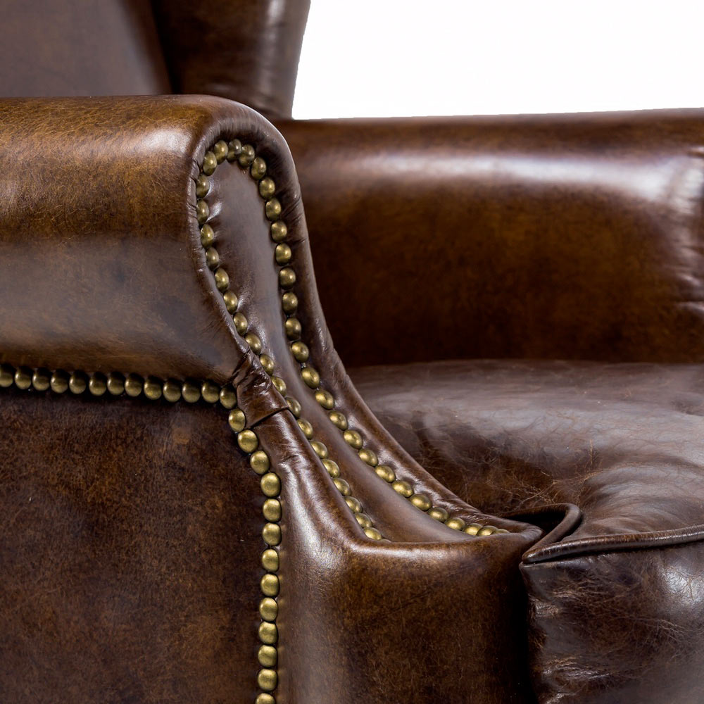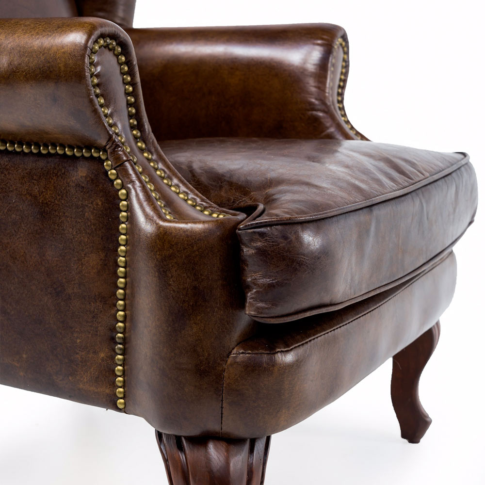 كرسي قراءة مصنوع من الجلد الحقيقي باللون البني الداكن، على الطراز الإنجليزي الكلاسيكي. هذا الكرسي بذراعين جزء من مجموعة تتميز بجمالها الأخّاذ وذوقها الخالد الذي يقاوم تقلبات الموضة وصيحات الموضة. هياكلها متينة وقوية ، وحرفيتها العالية، ودقتها اليدوية، وجلدها الطبيعي (جلد الزهرة) ، ودباغتها الخاصة المصممة خصيصًا لإضفاء لمسة عتيقة . تتميز منتجات هذه المجموعة بأشكالها الراقية والمواد الثمينة التي تُضفي عليها لمسةً مميزة. إنها مقاعد مثالية لتزيين بيئات الأثاث الفاخرة التي تُضفي على الأناقة والطابع الشخصي طابعًا خاصًا.