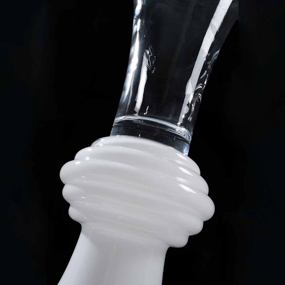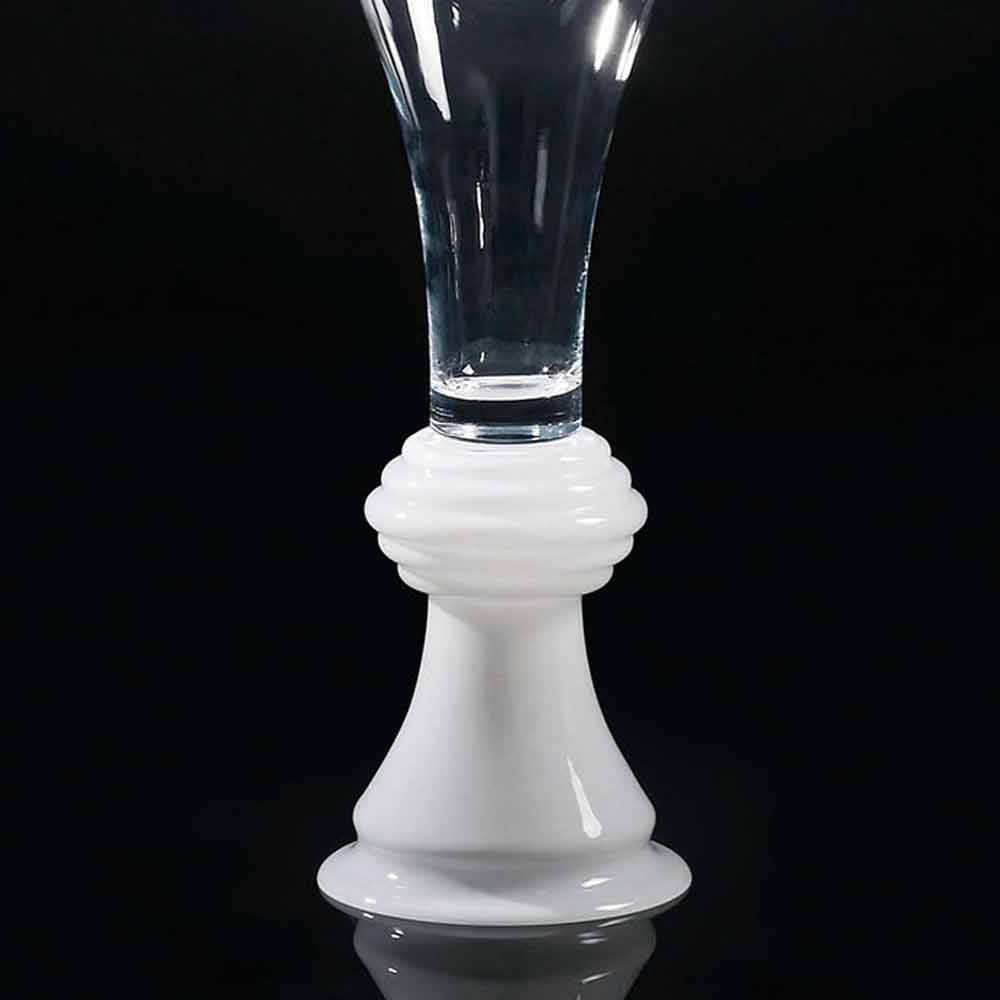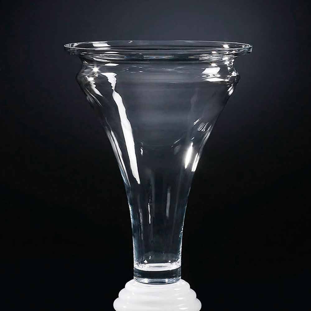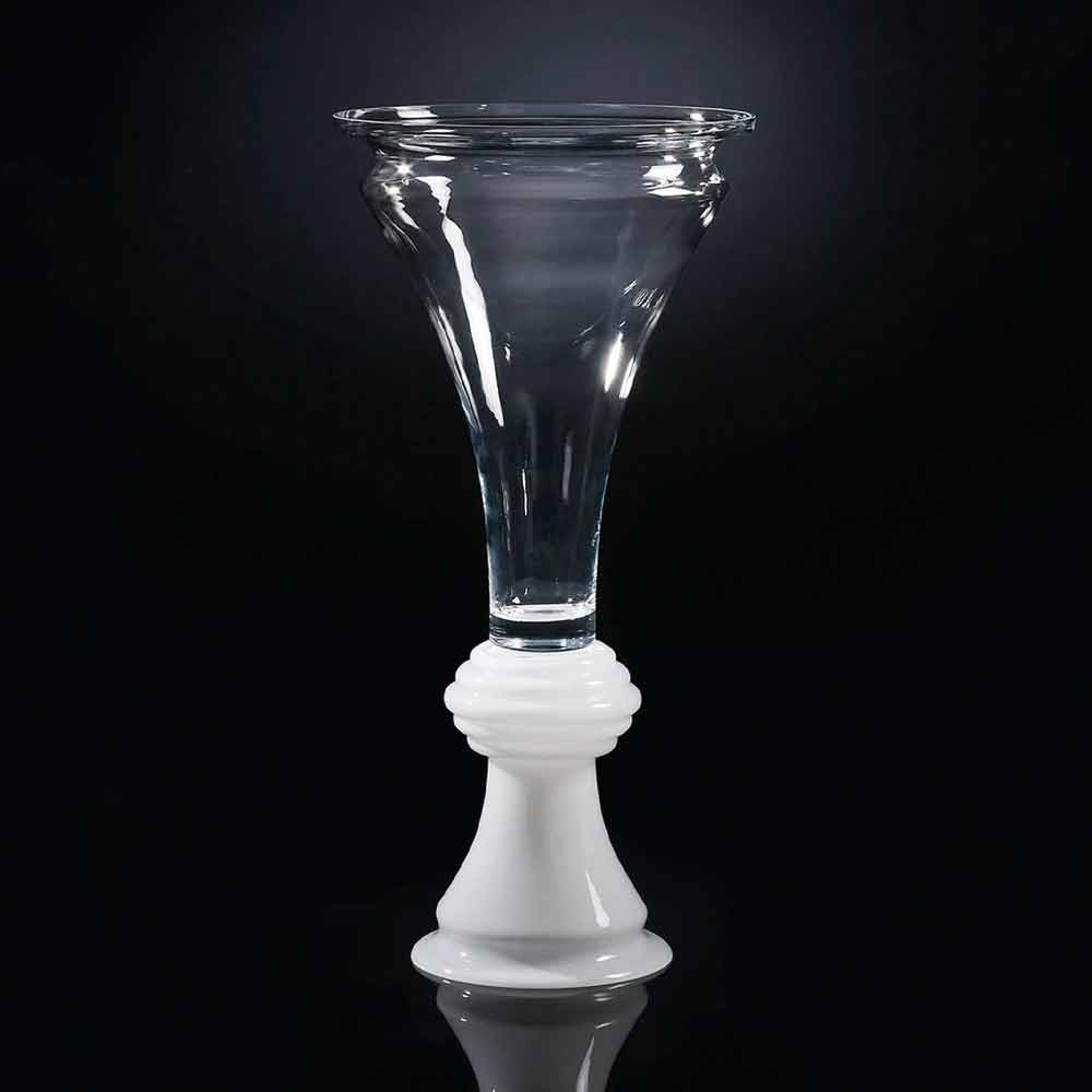 مزهرية ديكورية داخلية من الزجاج الأبيض الشفاف مصنوعة في إيطاليا.