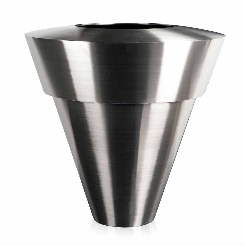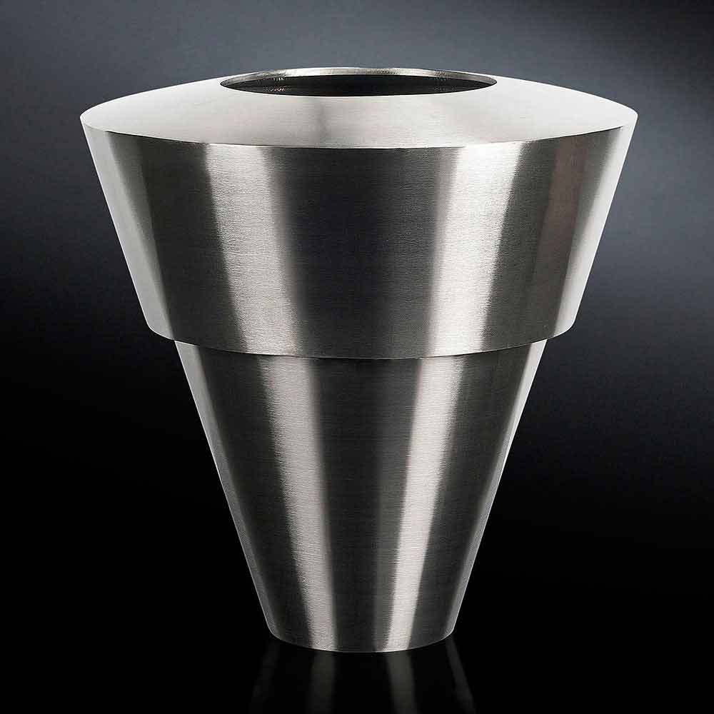 مزهرية أنيقة للديكورات الداخلية مصنوعة من الفولاذ المصقول في إيطاليا.