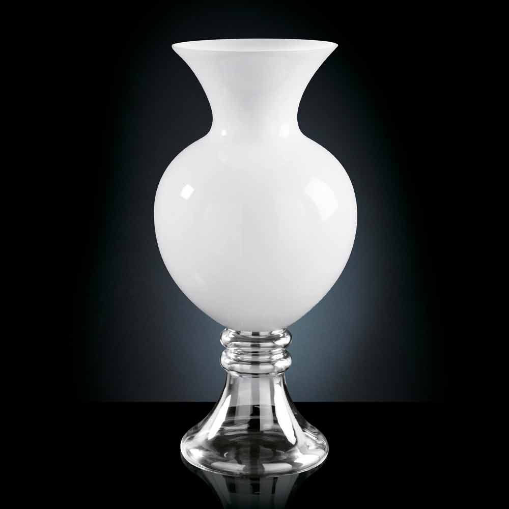 مزهرية أنيقة للديكورات الداخلية من الزجاج الأبيض الشفاف صنع في إيطاليا.